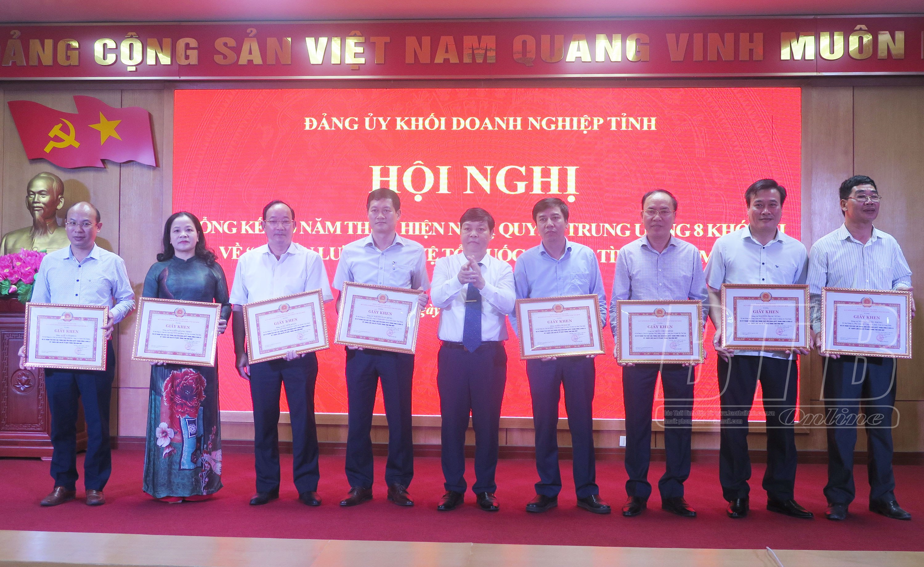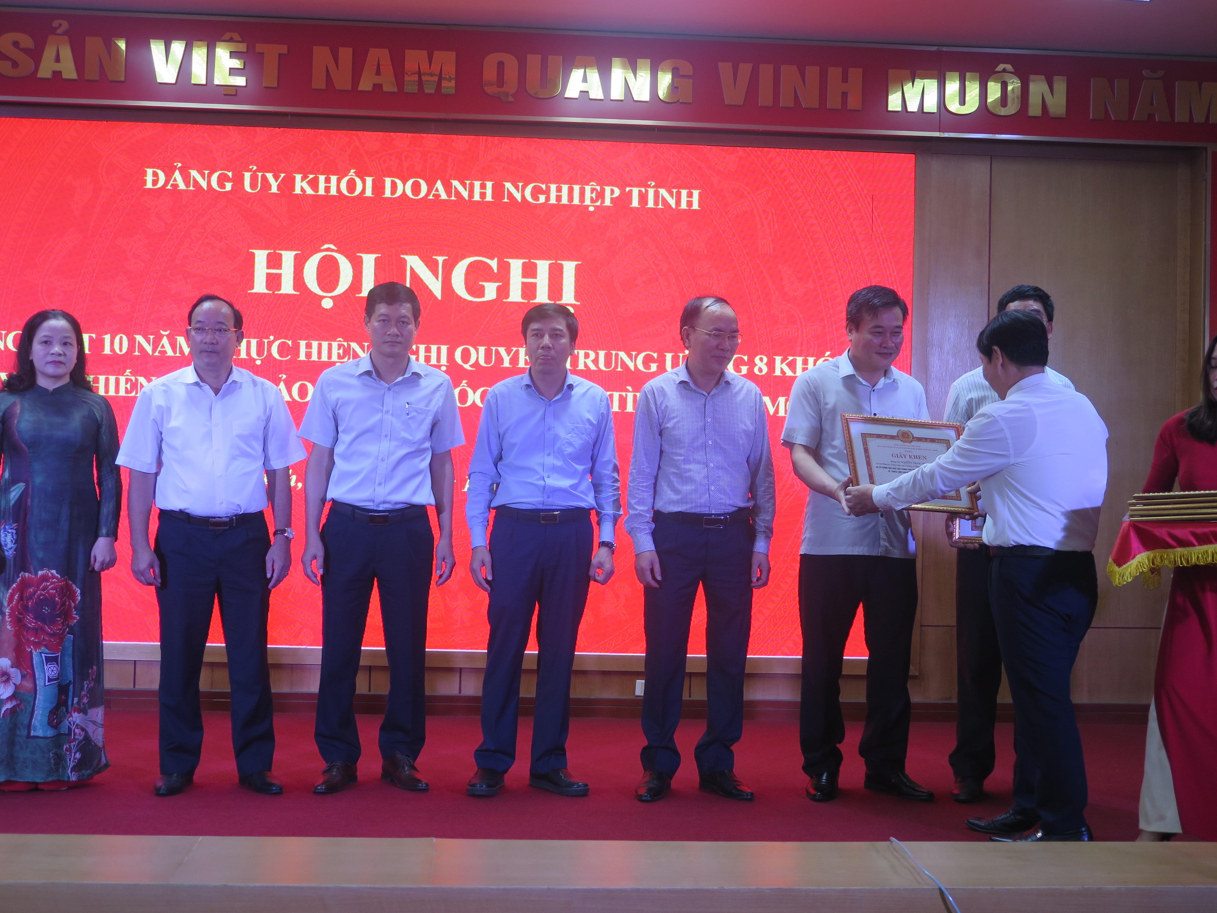 Tại hội nghị, Ban Thường vụ Đảng ủy Khối Doanh nghiệp tỉnh đã khen thưởng cho 12 tập thể, 8 cá nhân có thành tích xuất sắc trong thực hiện Nghị quyết Trung ương 8 (khóa XI) về "Chiến lược bảo vệ Tổ quốc trong tình hình mới".