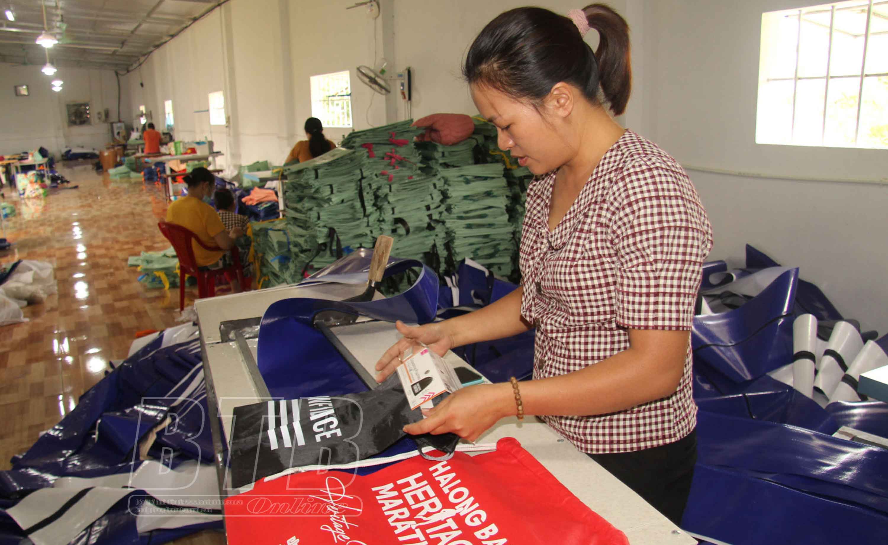 Chị Phương cho biết: Nhận thấy địa phương có nhiều lao động thiếu việc làm trong lúc nông nhàn, nhất là phụ nữ trung tuổi, tôi quyết định mở xưởng. Dù chỉ rộng hơn 350m2 nhưng xưởng được bố trí khoa học, thoáng đãng với hệ thống máy may hiện đại. Hiện xưởng đang tạo việc làm cho 30 lao động làm việc tại chỗ, hàng chục lao động làm việc tại nhà, thu nhập từ 5 - 7 triệu đồng/người/tháng. Mỗi tháng xưởng xuất bán 350.000 sản phẩm, trong đó 200.000 túi siêu thị gia công xuất cho đối tác nước ngoài, 50.000 túi chất lượng cao bán nội địa, 100.000 túi xách bán trực tiếp..., doanh thu đạt trên 6 tỷ đồng/năm.