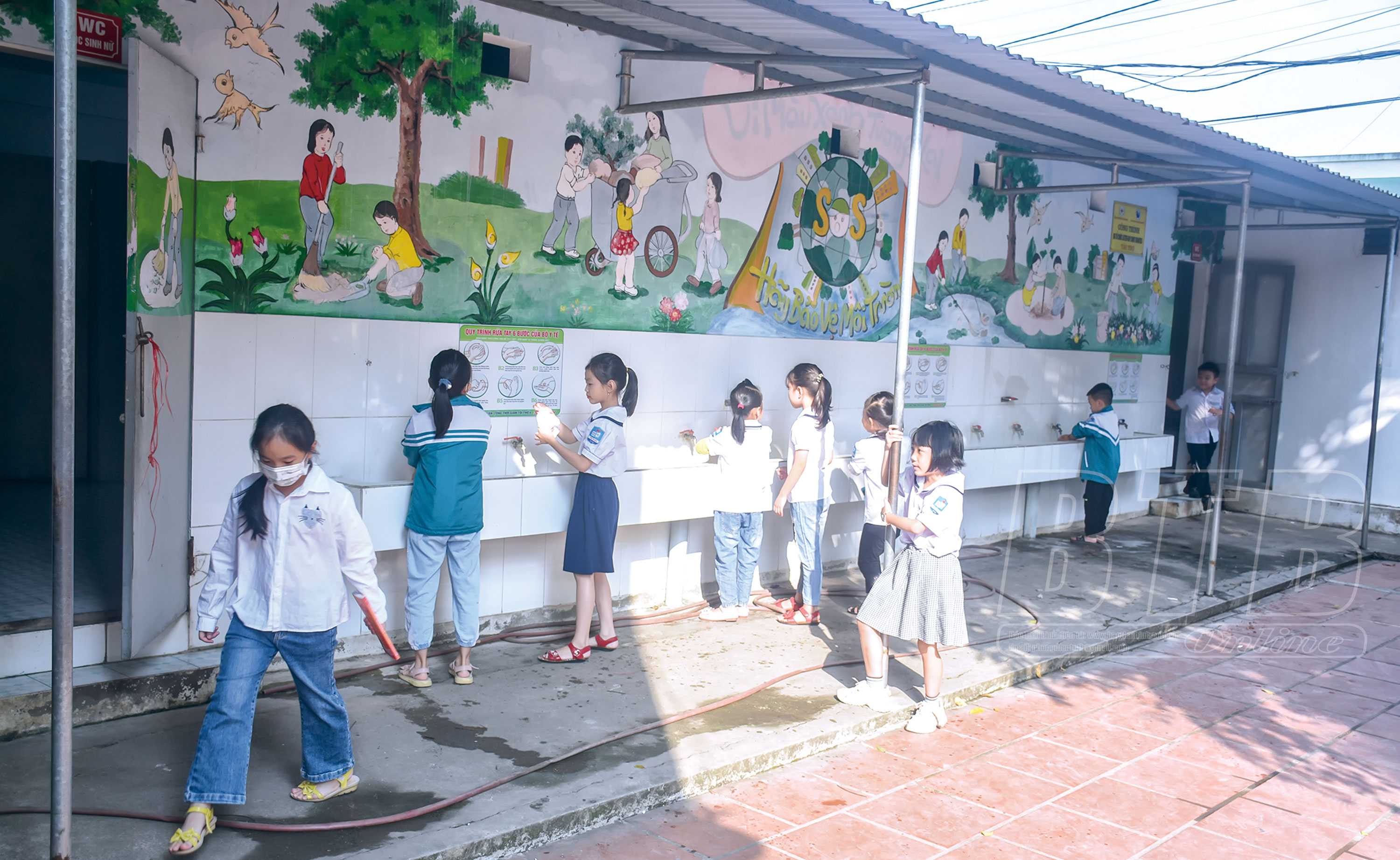 Nhờ nguồn vốn tài trợ của tổ chức LDSC, Trường Tiểu học thị trấn Vũ Thư được đầu tư xây dựng công trình nhà vệ sinh hiện đại, sạch sẽ.