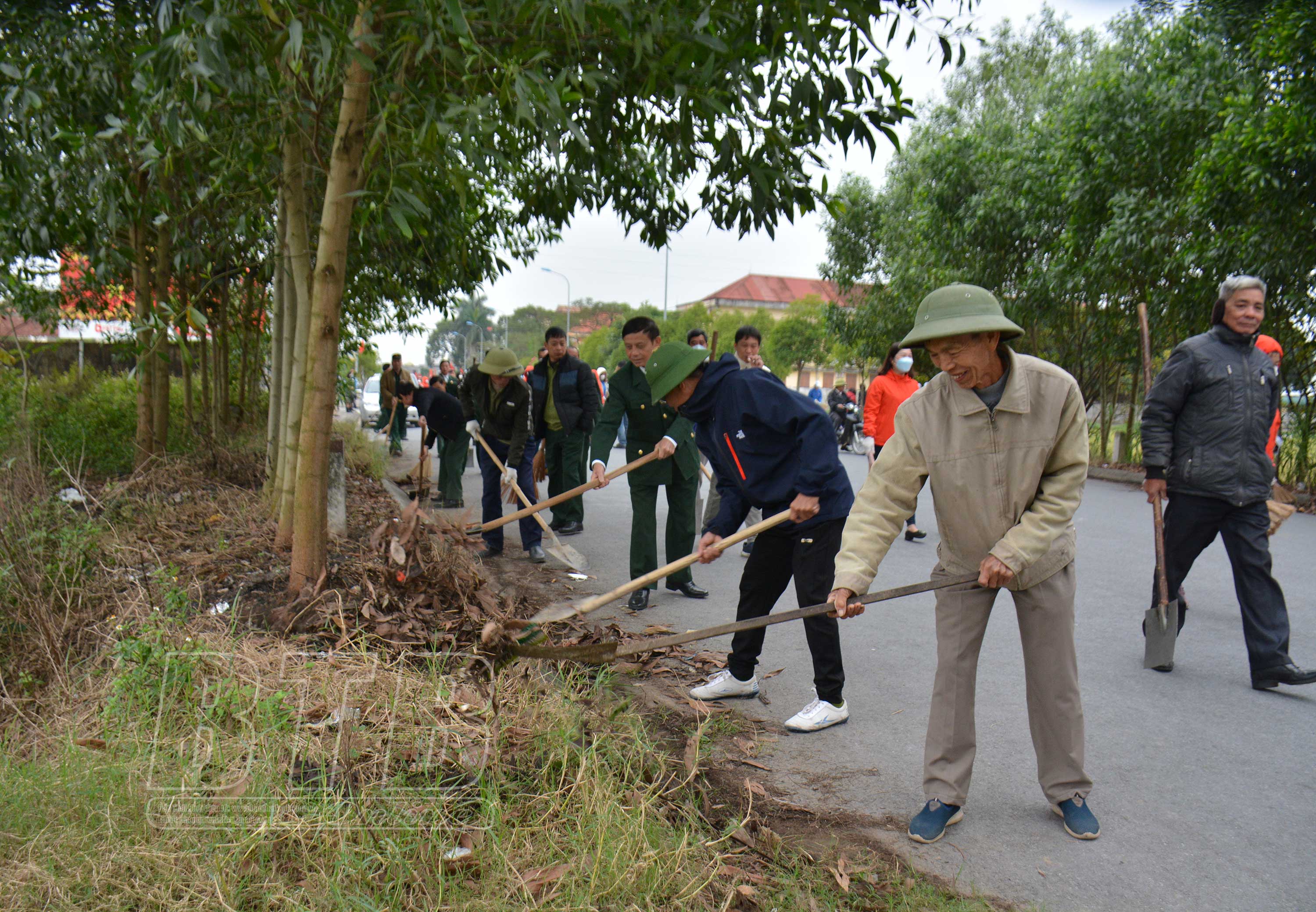 Cán bộ, hội viên hội cựu chiến binh, hội nông dân vệ sinh môi trường.