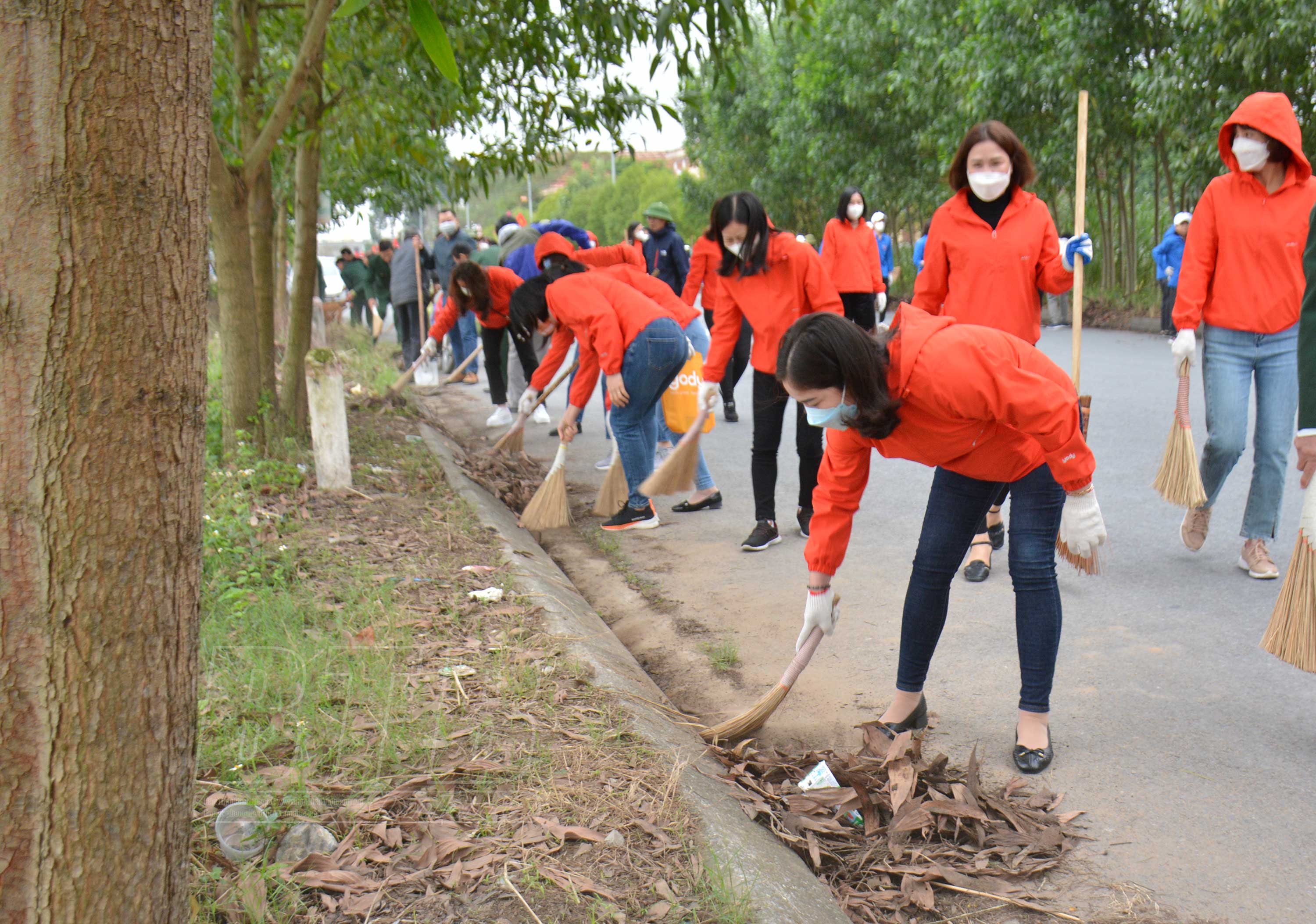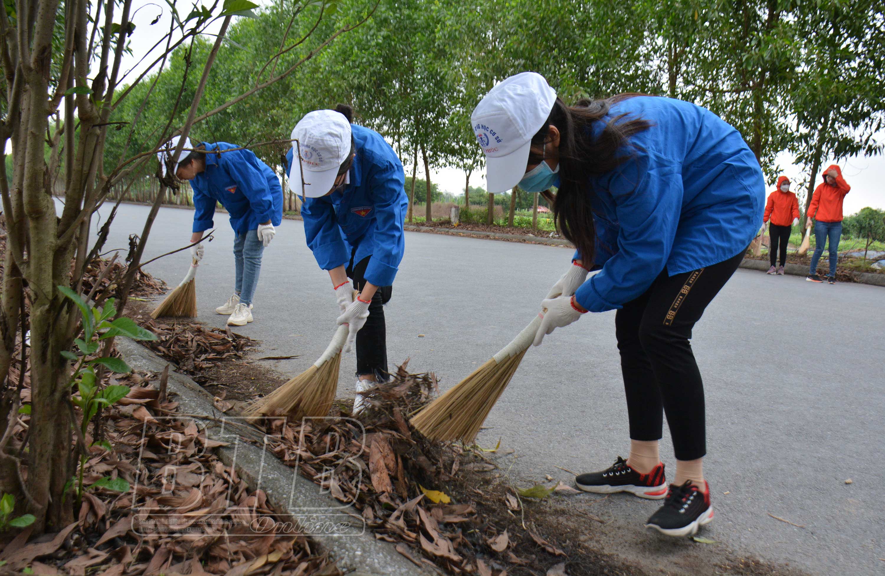 Đoàn viên, thanh niên vệ sinh môi trường tại xã Vũ Phúc.