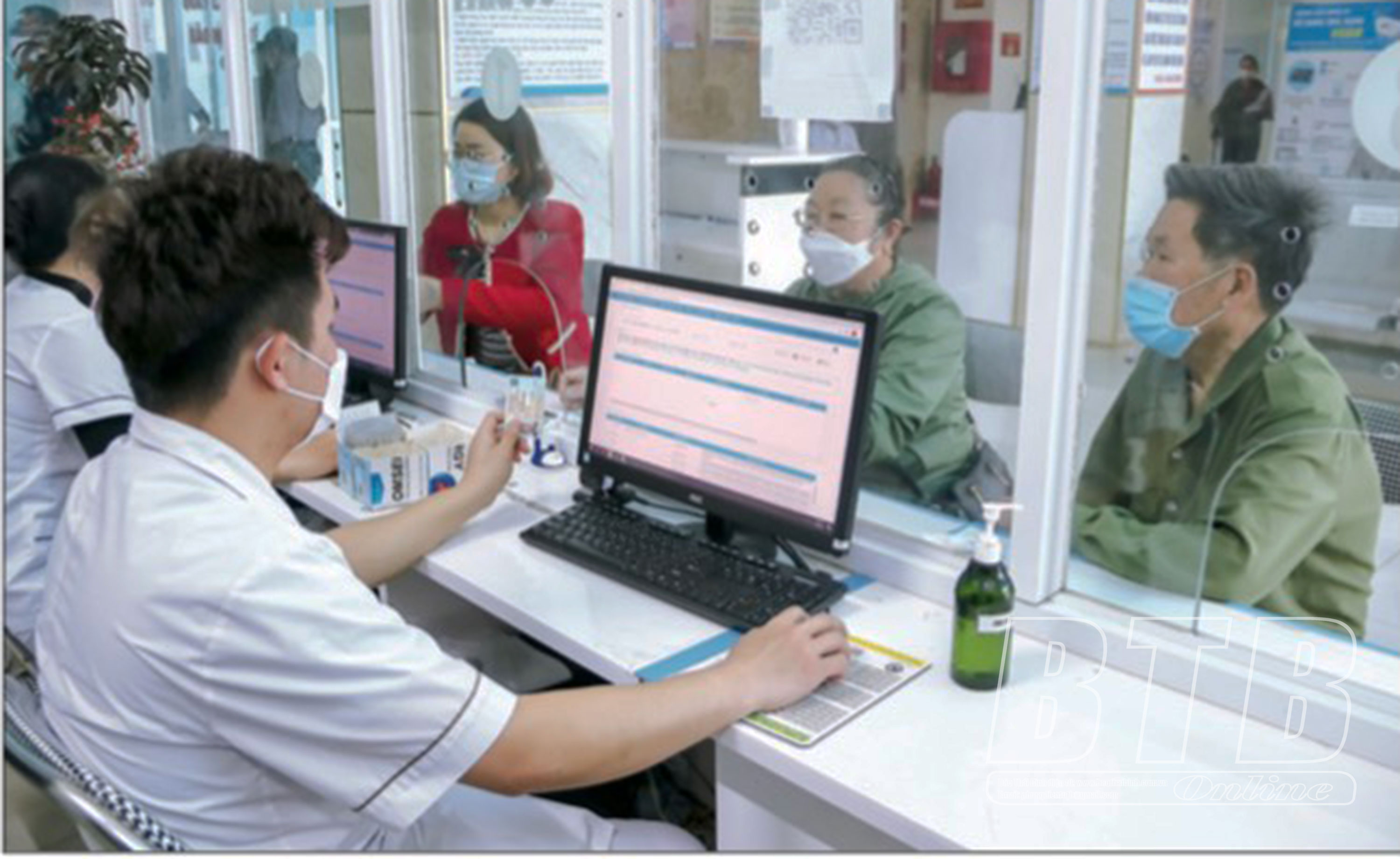 Người dân sử dụng căn cước công dân gắn chíp khi đi khám chữa bệnh tại Bệnh viện Lão khoa Phước Hải (thành phố Thái Bình).