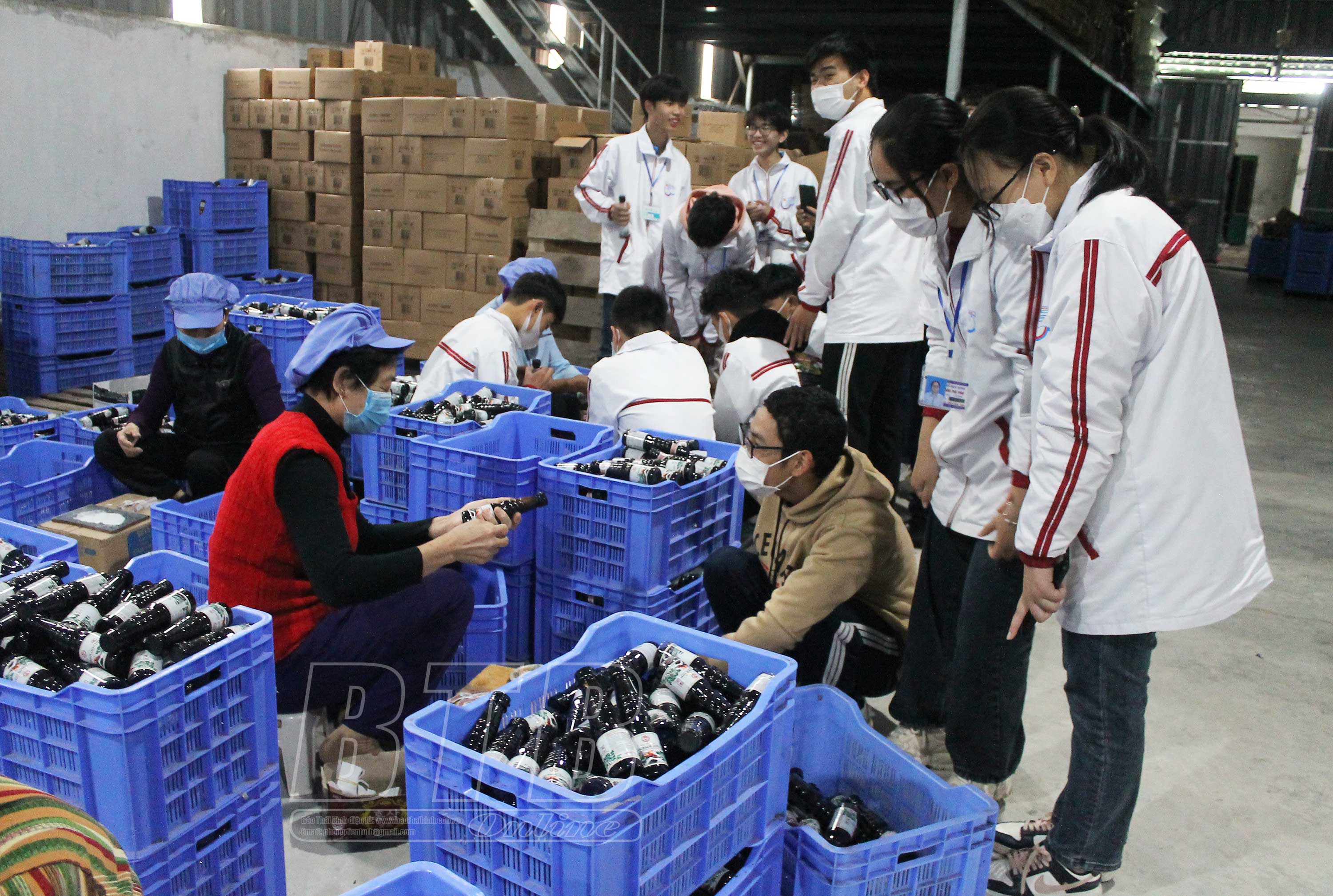 Học sinh Trường THPT Nguyễn Trãi trải nghiệm quy trình sản xuất các loại gia vị tại Công ty TNHH Thực phẩm Tân Tiến Đạt, xã Tân Hòa, huyện Vũ Thư.