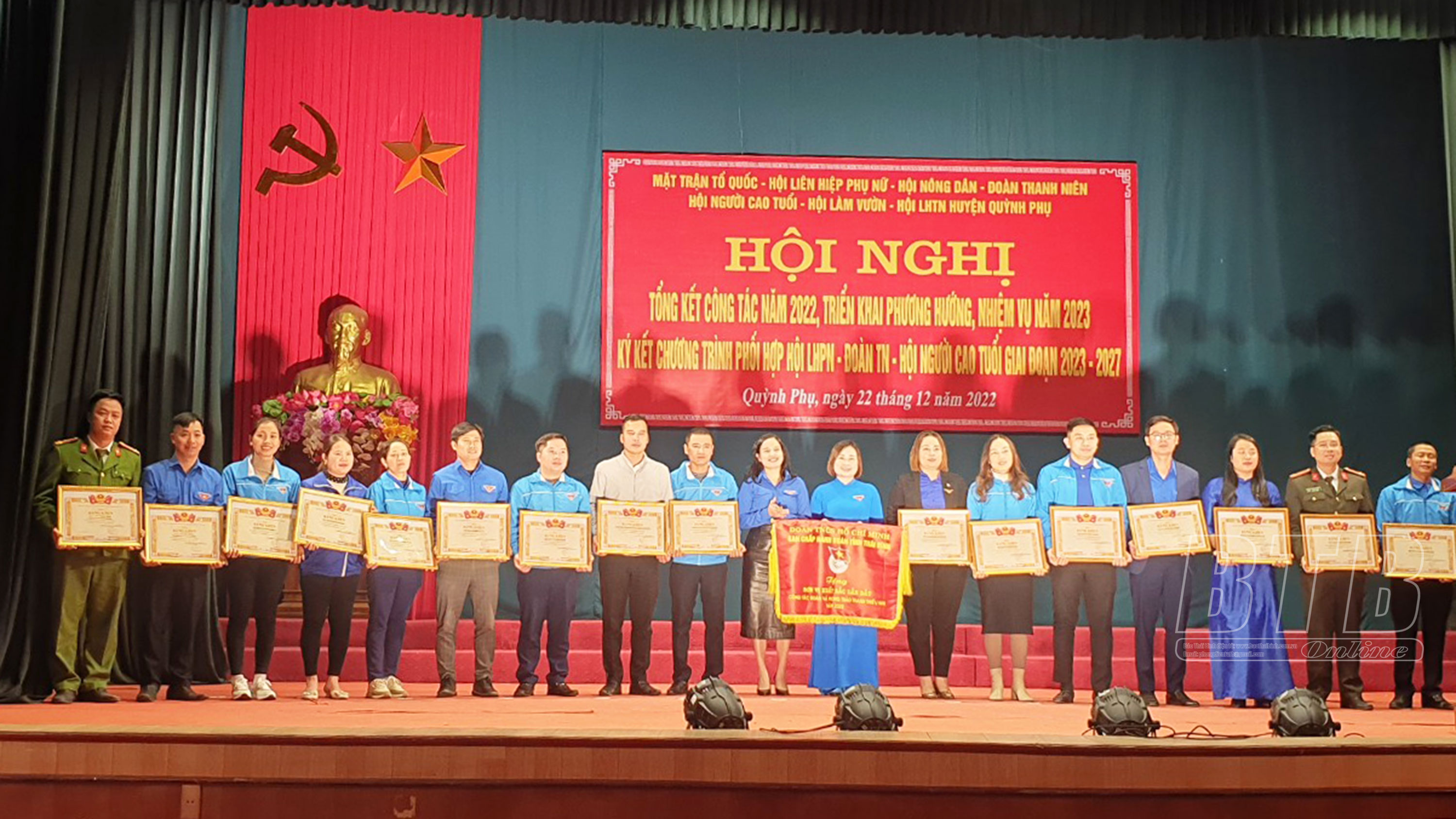 Lãnh đạo Tỉnh đoàn trao cờ thi đua và bằng khen của Tỉnh đoàn cho Huyện đoàn Quỳnh Phụ và các cơ sở đoàn trong huyện có thành tích xuất sắc trong năm 2022.