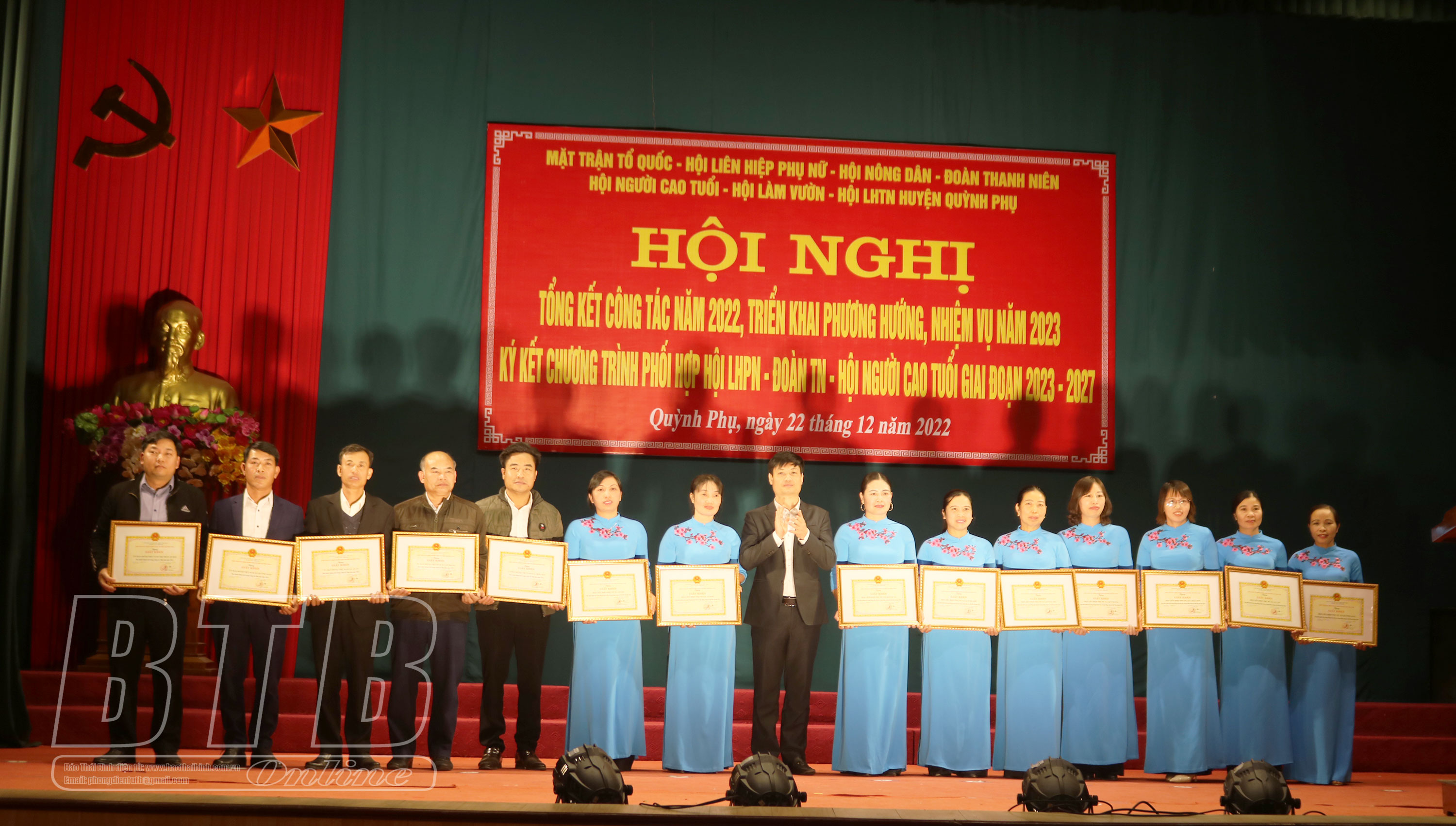 Lãnh đạo huyện Quỳnh Phụ khen thưởng cho các tập thể, cá nhân của các tổ chức hội, đoàn thể có nhiều thành tích trong năm 2022.