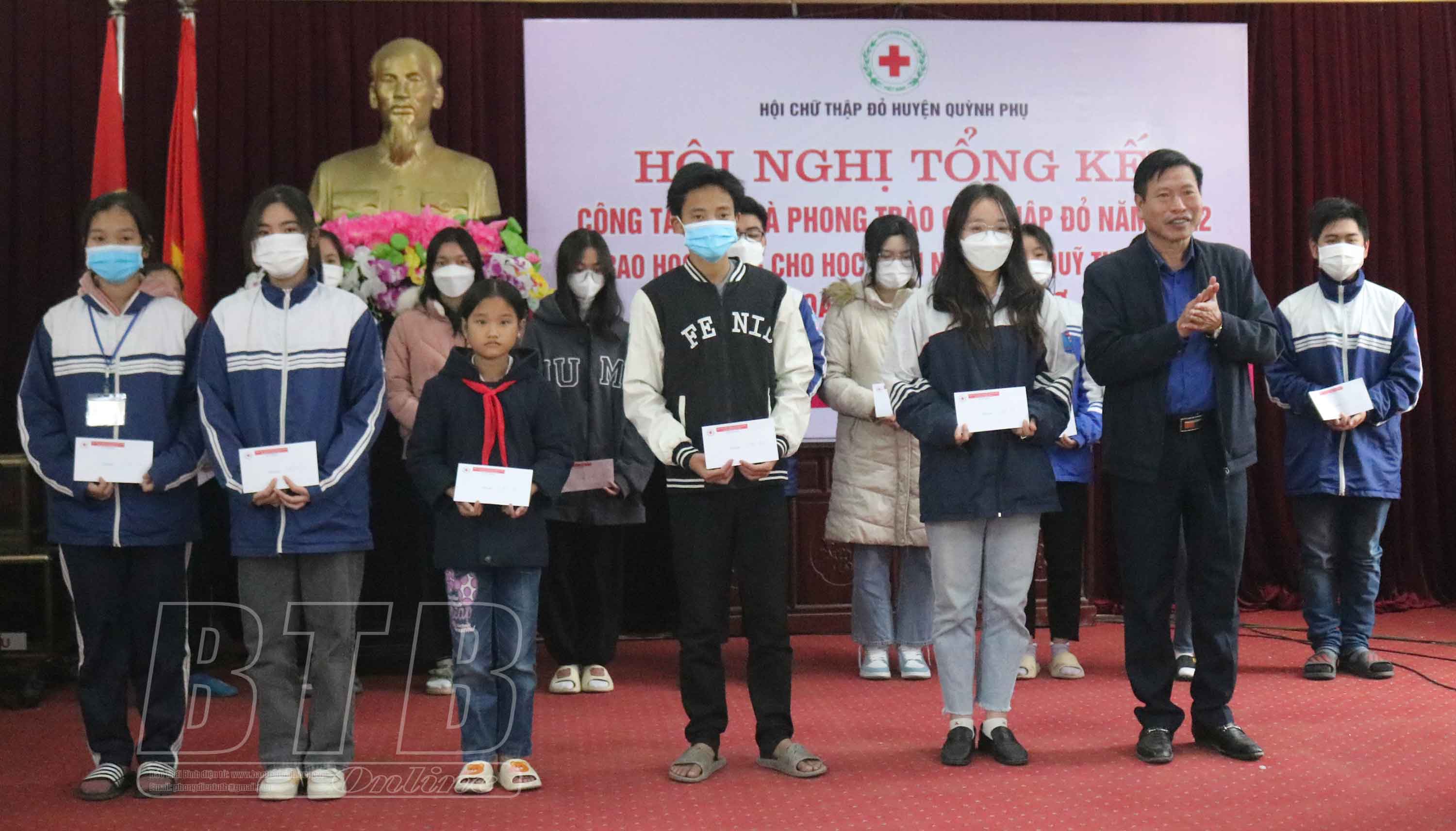Nhân dịp này, Hội CTĐ huyện Quỳnh Phụ tổ chức khen thưởng cho các tập thể, cá nhân có thành tích xuất sắc trong phong trào hội năm 2022 và tổ chức trao học bổng cho 29 học sinh nghèo vượt khó, học giỏi với tổng kinh phí 60,9 triệu đồng từ nguồn kinh phí hỗ trợ của quỹ Thiện Tâm (Tập đoàn Vingroup).