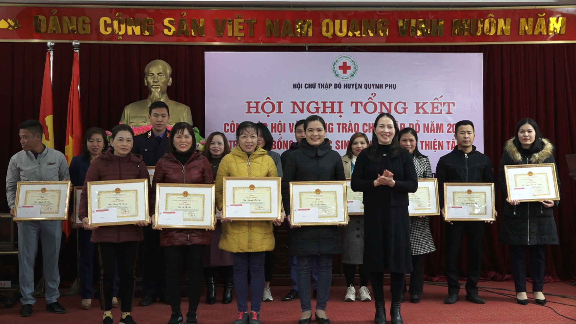 Lãnh đạo Hội Chữ thập đỏ huyện Quỳnh Phụ trao thưởng cho các tập thể, cá nhân đạt nhiều thành tích trong hoạt động nhân đạo năm 2022.
