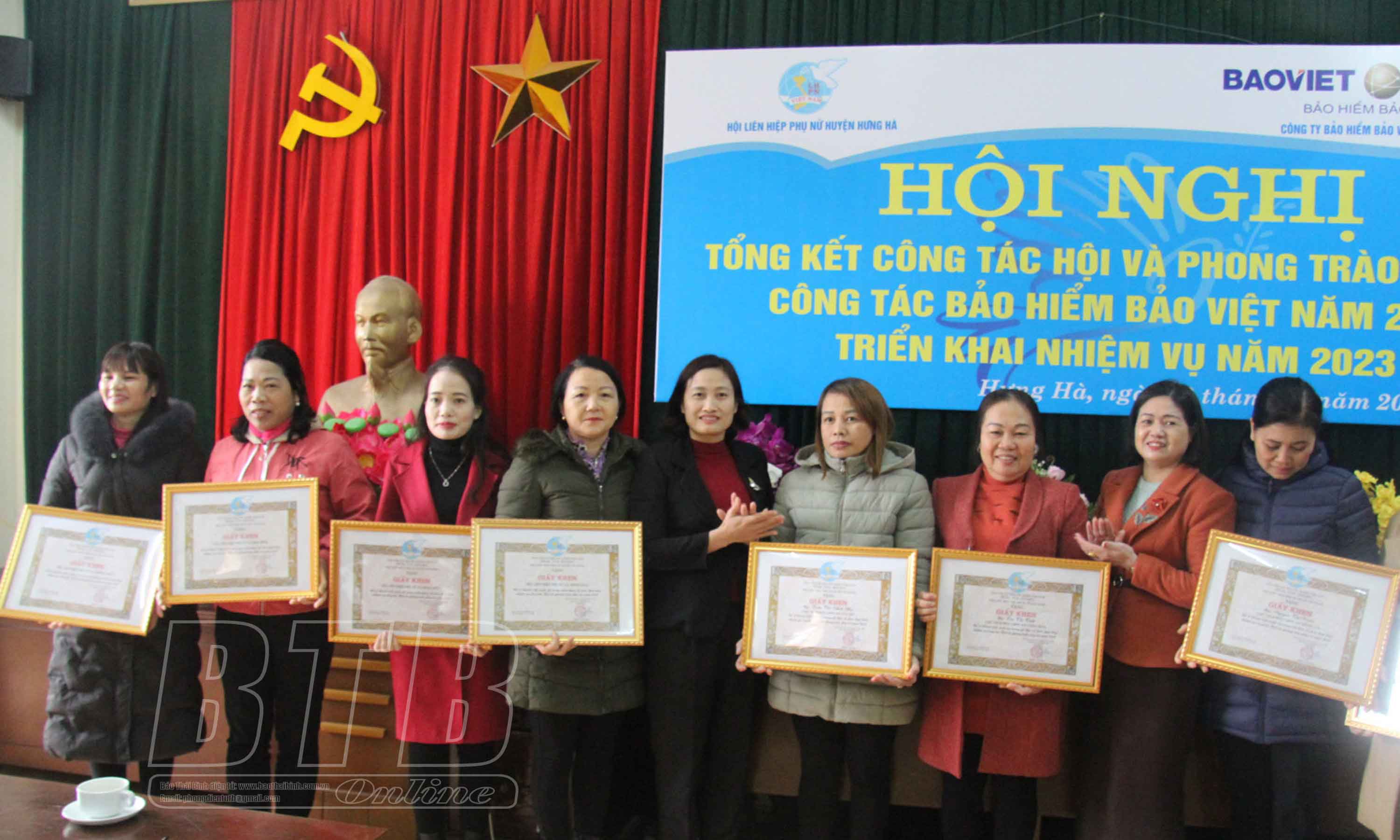 Tại hội nghị, các tập thể, cá nhân có thành tích xuất sắc trong công tác hội và phong trào phụ nữ đã được Trung ương Hội LHPN Việt Nam, Hội LHPN tỉnh, Hội LHPN huyện Hưng Hà khen thưởng; đồng thời tổ chức ký giao ước thi đua năm 2023.