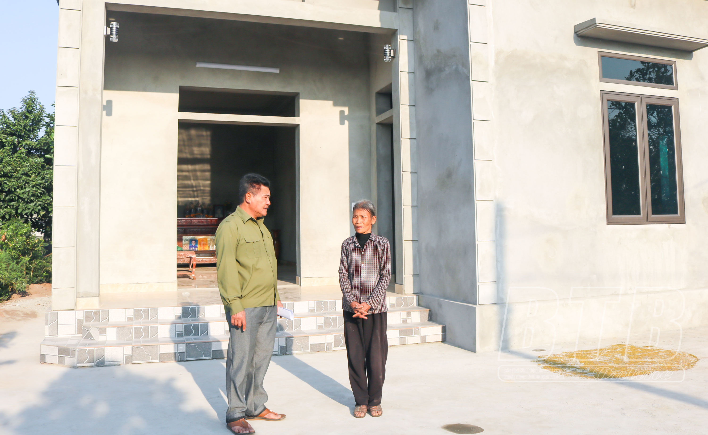 Chung niềm vui như bà Mươi và bà Miên, bà Phạm Thị Dậu, thôn Trung Hòa, xã Bách Thuận (Vũ Thư) tết năm nay cũng được vui xuân trong ngôi nhà mới chắc chắn. Đến thăm ngôi nhà đại đoàn kết rộng 100m2 có tổng trị giá hơn 400 triệu đồng, chúng tôi được chứng kiến sự lạc quan, yêu đời của bà Dậu. Bà chia sẻ: Gia đình tôi nhiều năm liền thuộc diện có hoàn cảnh khó khăn, con trai nuôi hai đứa con ăn học, đồng lương công nhân cũng chỉ giúp cháu trang trải đủ cuộc sống gia đình. Bản thân tôi hàng ngày phải mò cua, bắt ốc hoặc đi làm thuê ở các hộ dân trong xã để kiếm thêm thu nhập. Tháng 3/2022, cán bộ MTTQ cùng Hội Liên hiệp Phụ nữ xã đến động viên và thông báo nếu gia đình có nhu cầu về nhà ở thì sẽ hỗ trợ 50 triệu đồng. Tôi thấy đây là cơ hội để mình và con cháu trong gia đình có được ngôi nhà chắc chắn, hai cháu nhỏ có thể yên tâm học hành nên tôi đã vay mượn họ hàng, làng xóm được gần 200 triệu đồng xây dựng ngôi nhà, còn lại tôi được thợ xây giúp đỡ bằng việc cho nợ trả chậm. Từ ngày xây xong nhà mới, tôi luôn động viên các cháu chăm chỉ học hành, nhớ tới công ơn của Đảng, Nhà nước đã giúp gia đình tôi có được ngôi nhà khang trang, chắc chắn mà tích cực học hành cho giỏi, sau này trở thành công dân có ích.