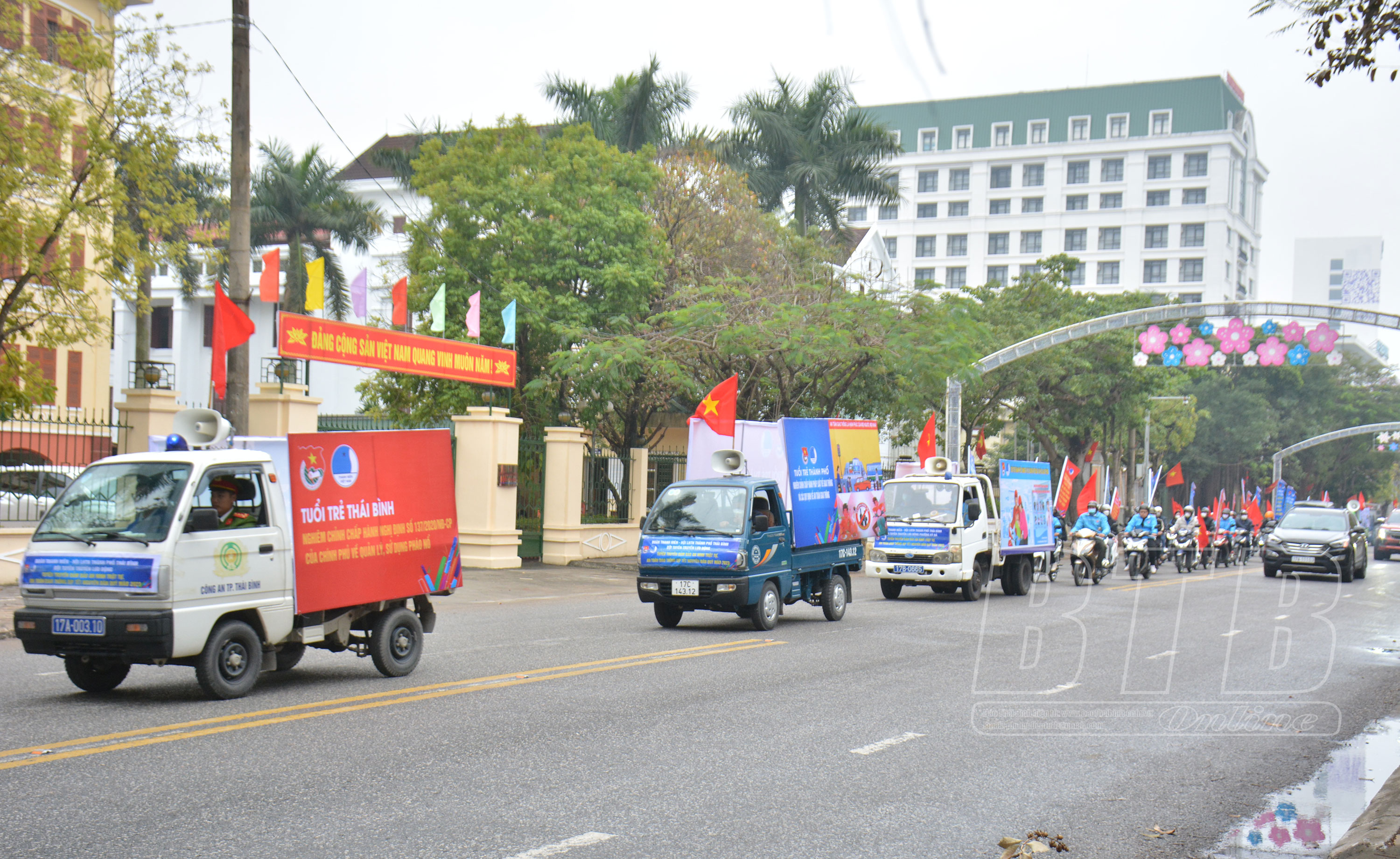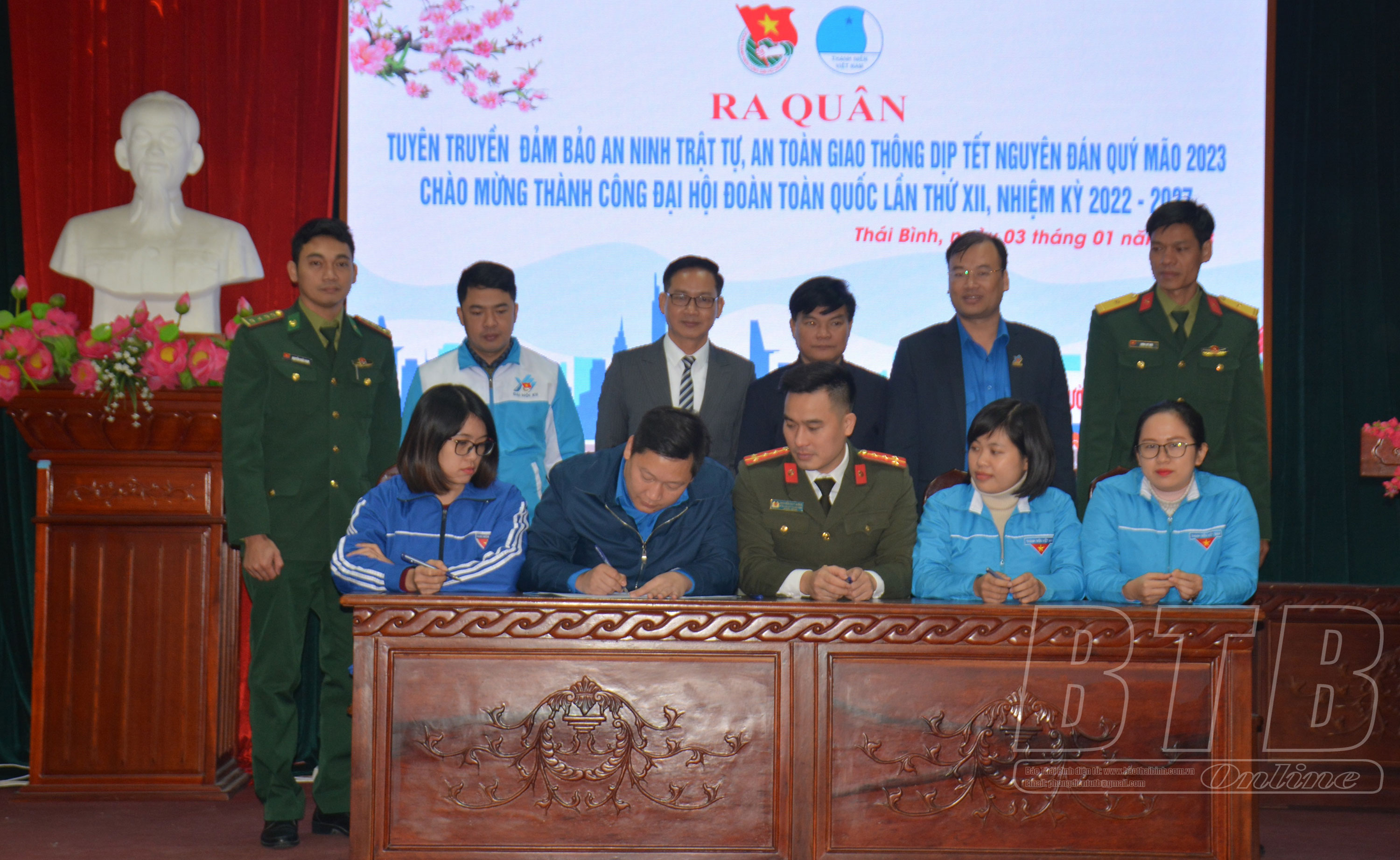 Tại chương trình, Tỉnh đoàn, Hội Liên hiệp Thanh niên tỉnh và nhà tài trợ đã trao quà cho các đội hình tình nguyện; các đơn vị trực thuộc ký cam kết thực hiện hiệu quả các chỉ thị, nghị quyết của trung ương, của tỉnh về công tác bảo đảm an ninh trật tự, ATGT, phòng chống cháy nổ; phòng ngừa, đấu tranh với các hành vi vi phạm về quản lý vũ khí, vật liệu nổ, công cụ hỗ trợ và pháo; ra quân tuyên truyền tại thành phố Thái Bình.