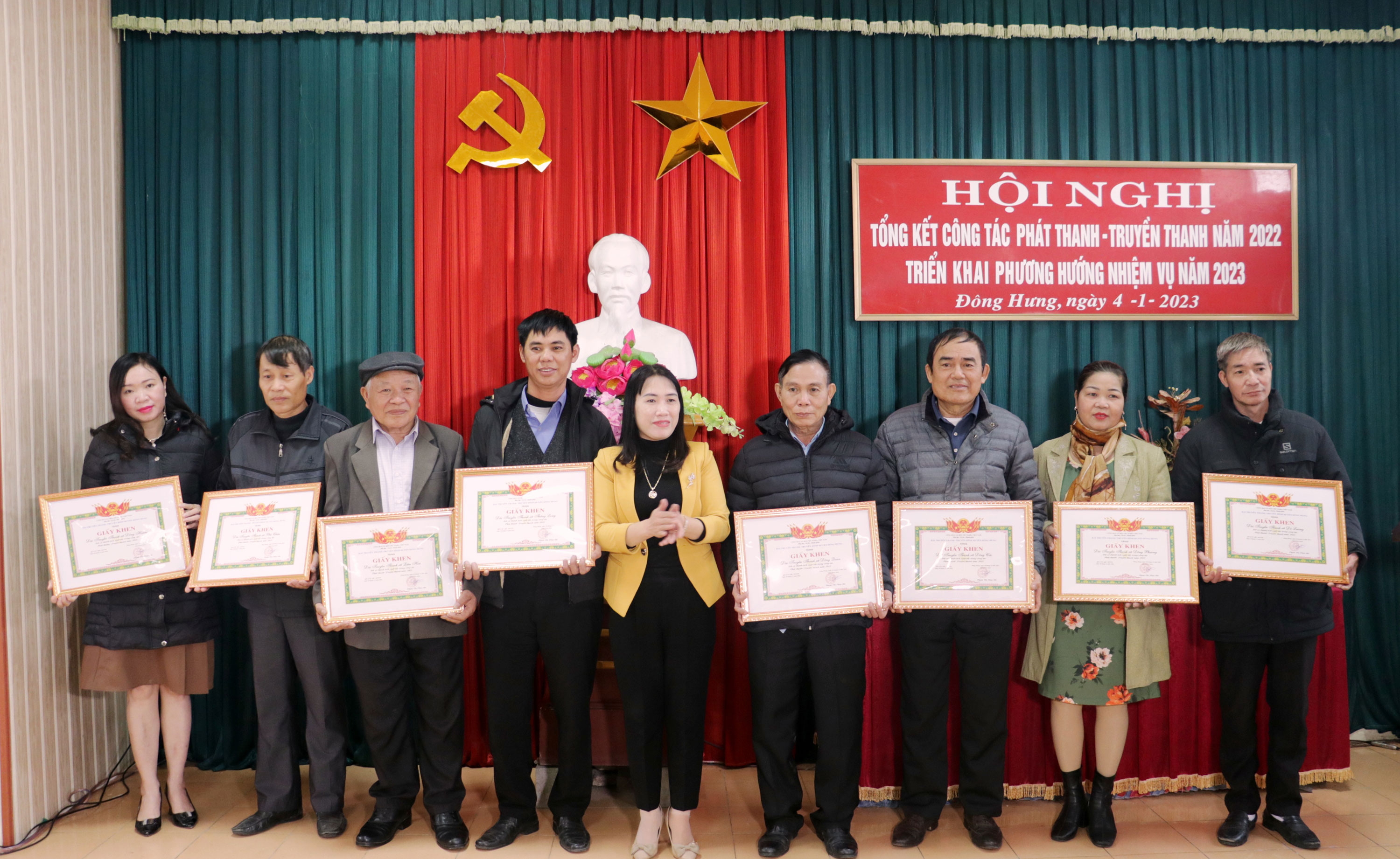 Tại hội nghị, 16 tập thể có thành tích xuất sắc trong công tác tuyên truyền được UBND huyện và Đài TT-TH Đông Hưng khen thưởng.