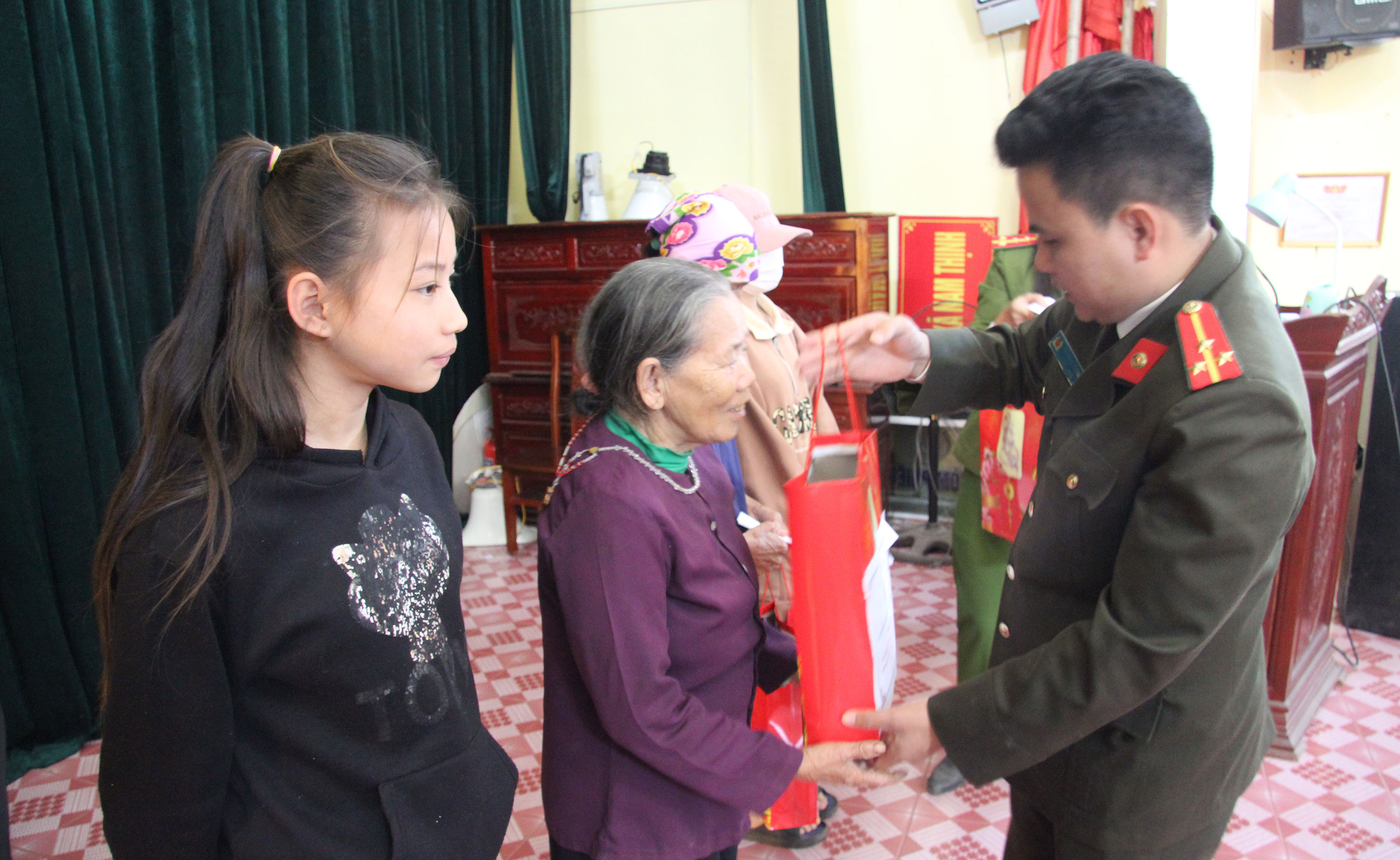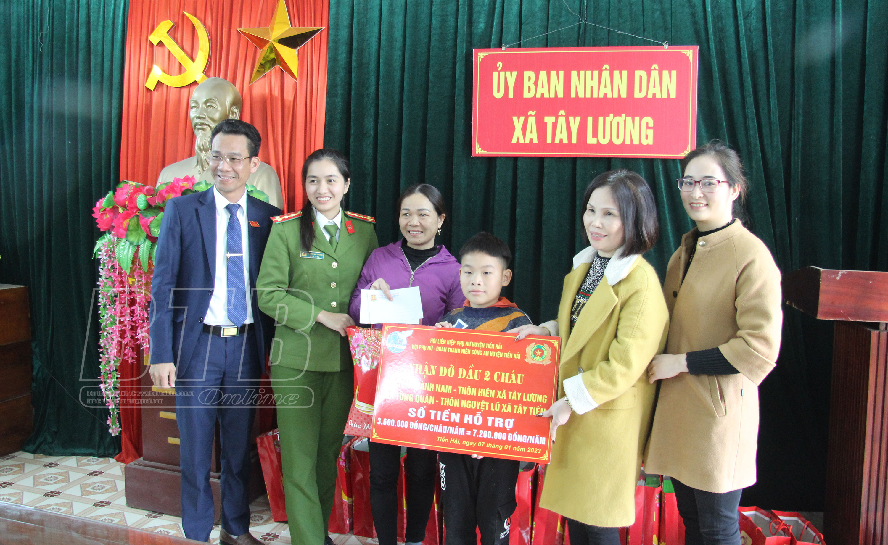 Chiều cùng ngày, Hội Phụ nữ huyện Tiền Hải, Hội Phụ nữ, Đoàn Thanh niên Công an huyện đã tặng 95 suất quà nhân dịp tết Nguyên đán cho các hộ dân có hoàn cảnh khó khăn tại các xã: Nam Chính, Nam Hồng, Nam Thắng, Nam Thịnh, Tây Lương, Tây Tiến. Đây là việc làm của các đoàn thể, thể hiện tinh thần chia sẻ, kịp thời động viên, các gia đình có hoàn cảnh khó khăn đón tết Nguyên đán Quý Mão 2023 đầm ấm, nhiều niềm vui.