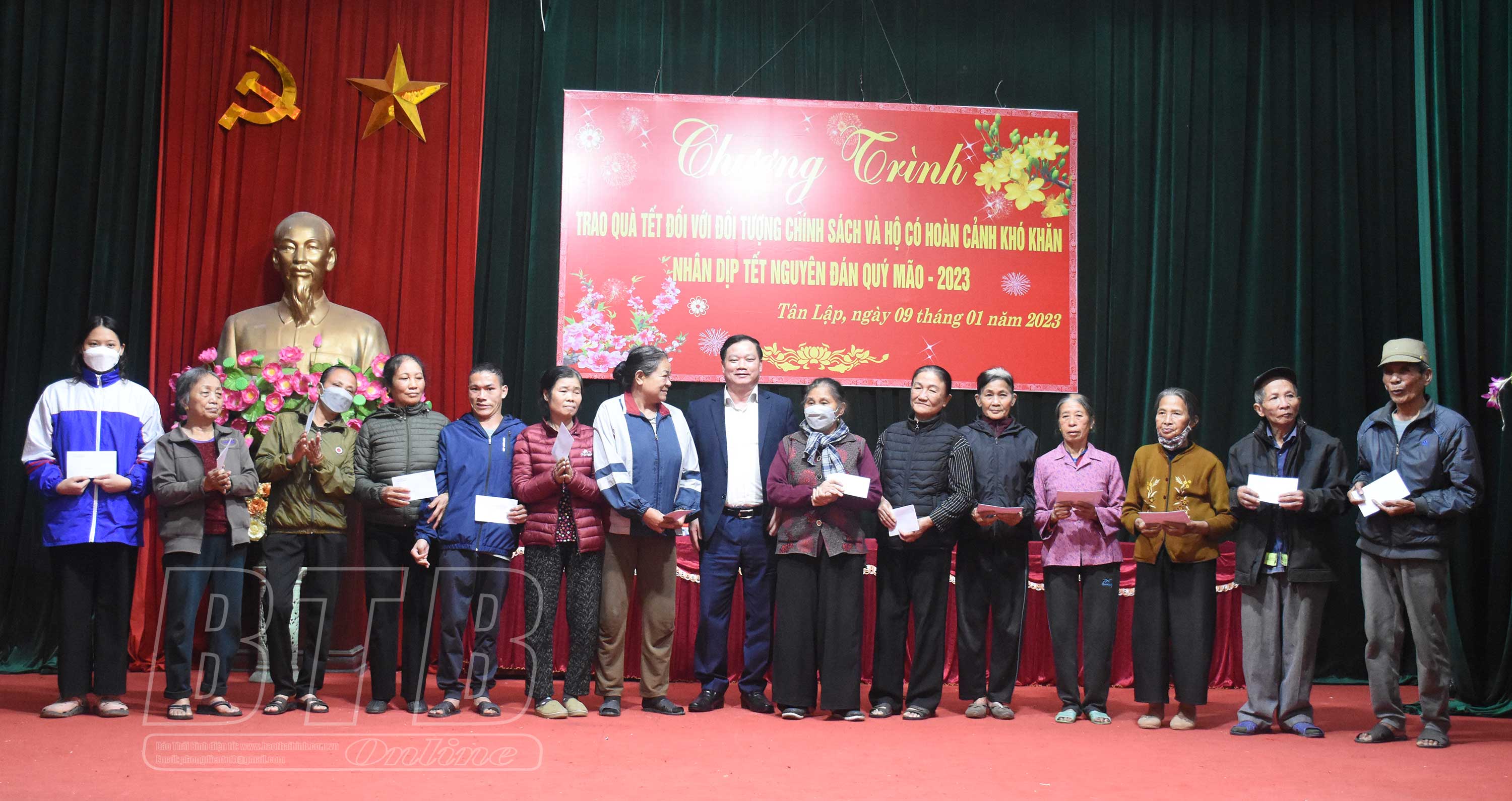 Trước đó, đồng chí Phó Bí thư Tỉnh ủy, Chủ tịch UBND tỉnh cùng đồng chí Phó Chủ tịch thường trực HĐND tỉnh đã trao 100 suất quà tết với tổng trị giá 50 triệu đồng cho các hộ nghèo, hộ có hoàn cảnh khó khăn trên địa bàn xã Tân Lập.