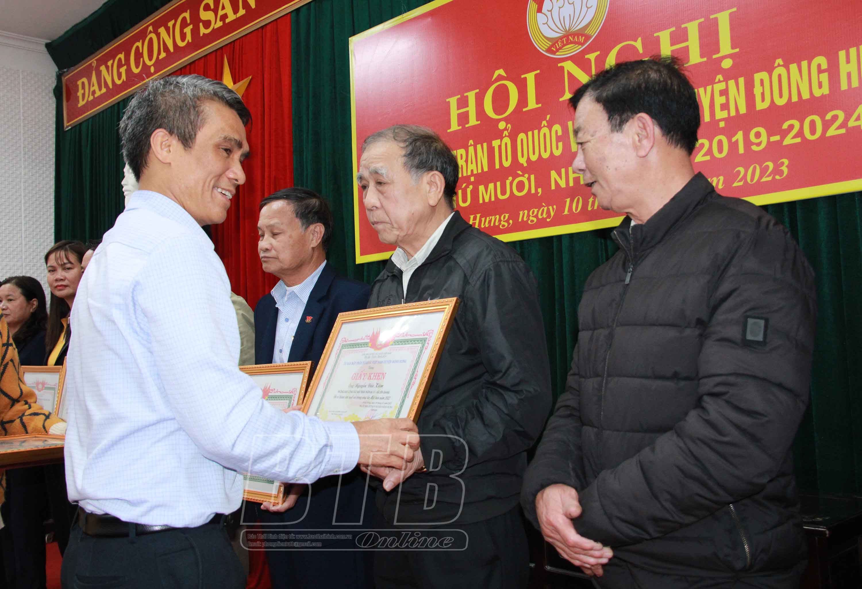 Lãnh đạo Ủy ban MTTQ huyện trao giấy khen cho các cá nhân có thành tích xuất sắc.