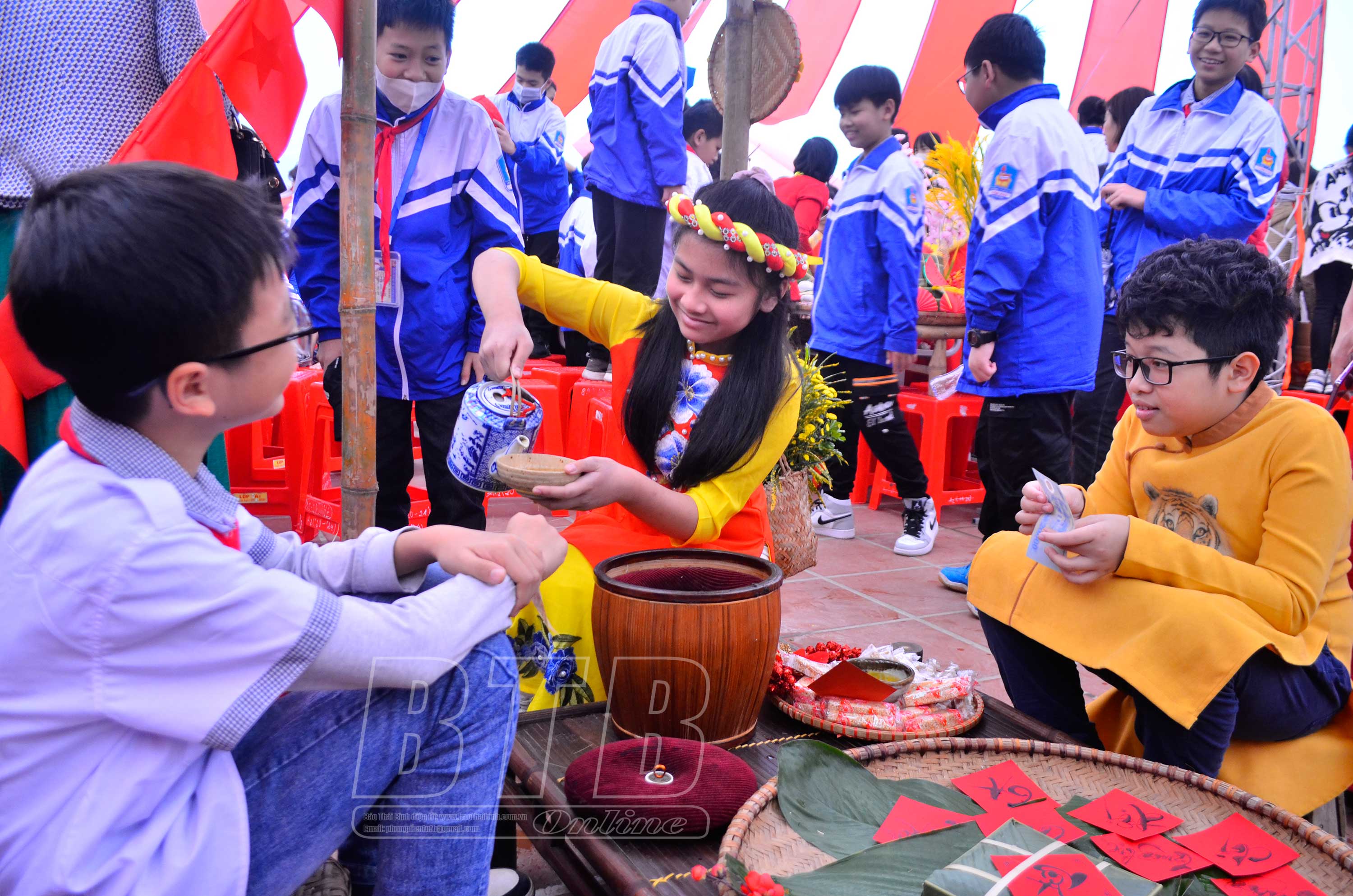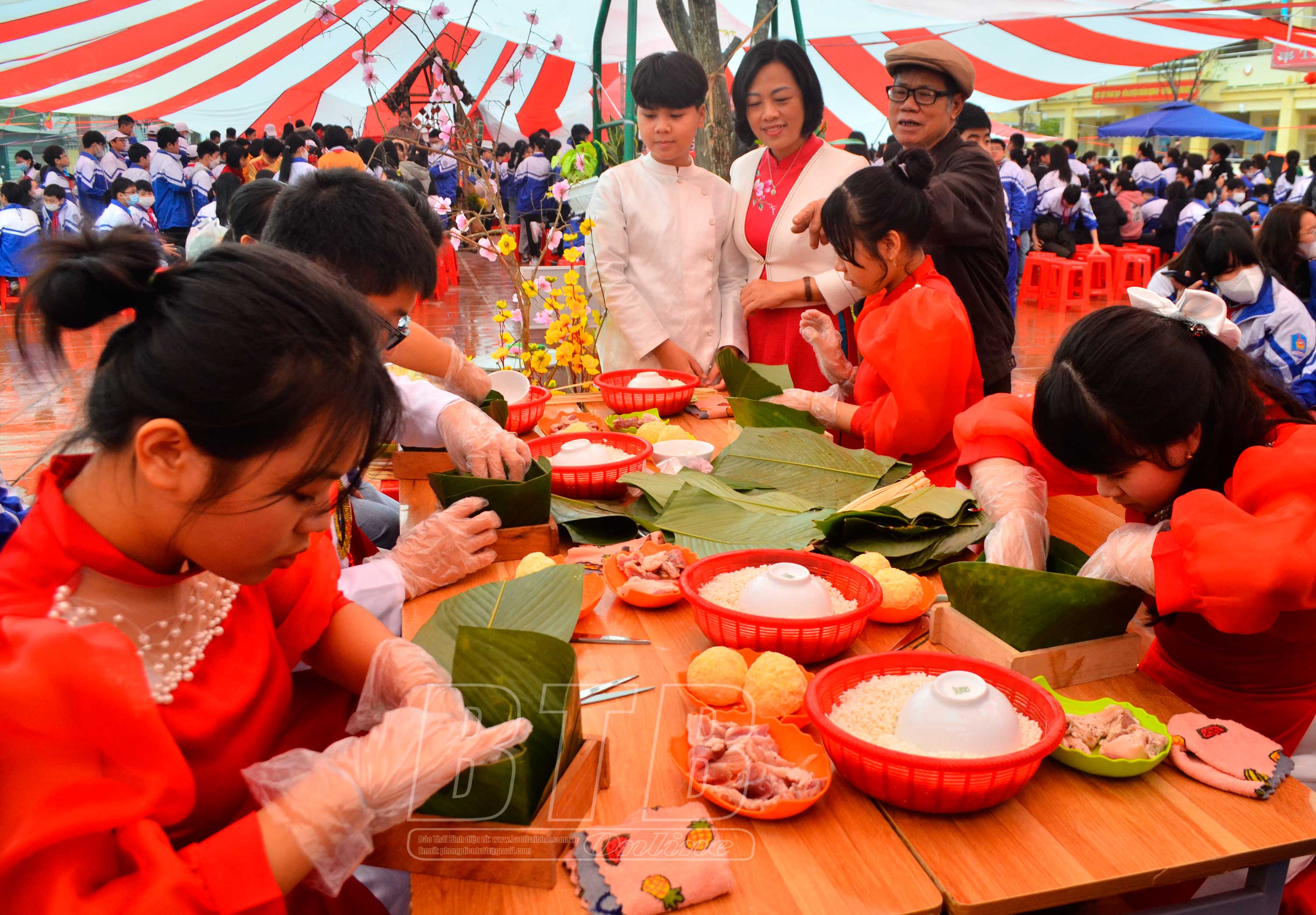 Cũng trong buổi sáng, các em học sinh đã tham gia thi “Gói bánh chưng xanh”. Mỗi lớp gồm 5 thành viên, tham gia gói 10 chiếc bánh chưng trong 30 phút. Đây là hoạt động thiết thực nhằm giáo dục các em về kỹ năng sống, góp phần thúc đẩy hơn nữa sự phối hợp của nhà trường, gia đình trong quá trình dạy học và giáo dục kỹ năng sống cho học sinh.