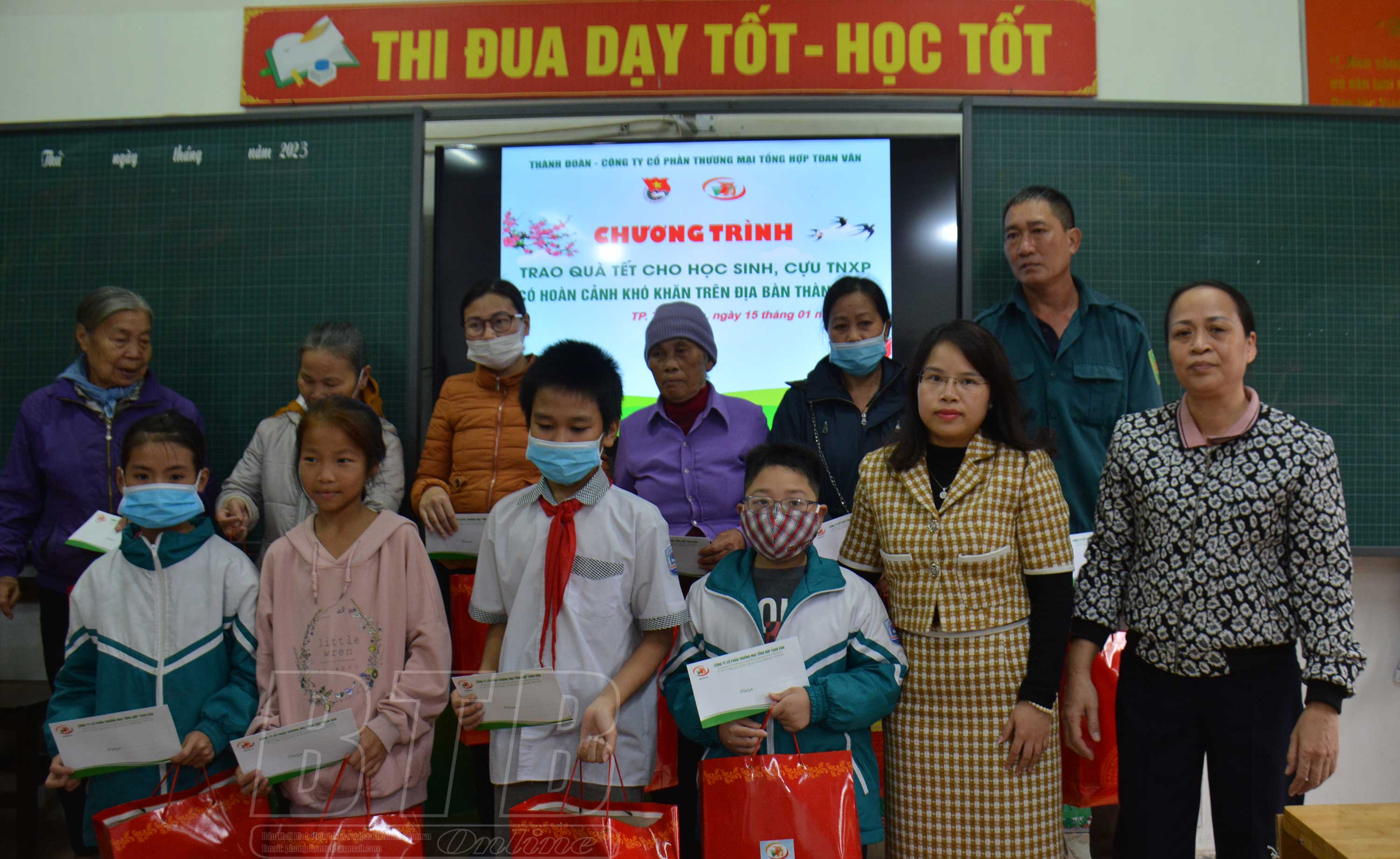 Trước đó, sáng ngày 15/1, Đoàn Thanh niên thành phố Thái Bình và Đoàn Thanh niên Trường Đại học Thái Bình đã trao 150 suất quà cho học sinh, người có hoàn cảnh khó khăn trên địa bàn thành phố.
