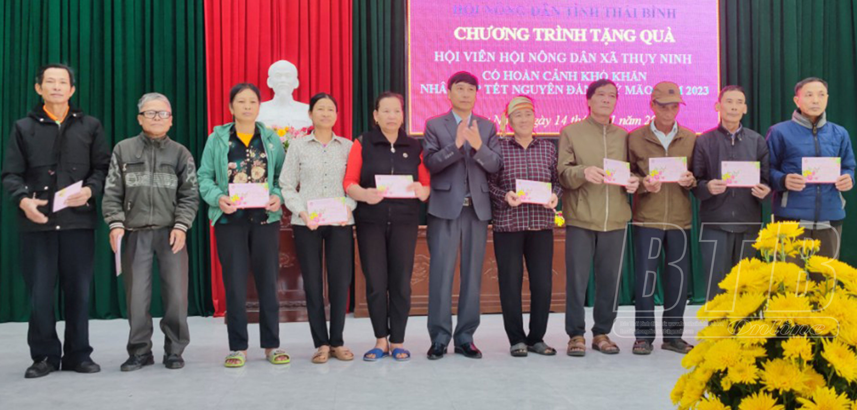 Chiều ngày 16/1, Hội Nông dân tỉnh trao 20 suất quà trị giá mỗi suất 500.000 đồng cho hội viên nghèo, hội viên có hoàn cảnh khó khăn của xã Mỹ Lộc (Thái Thụy).