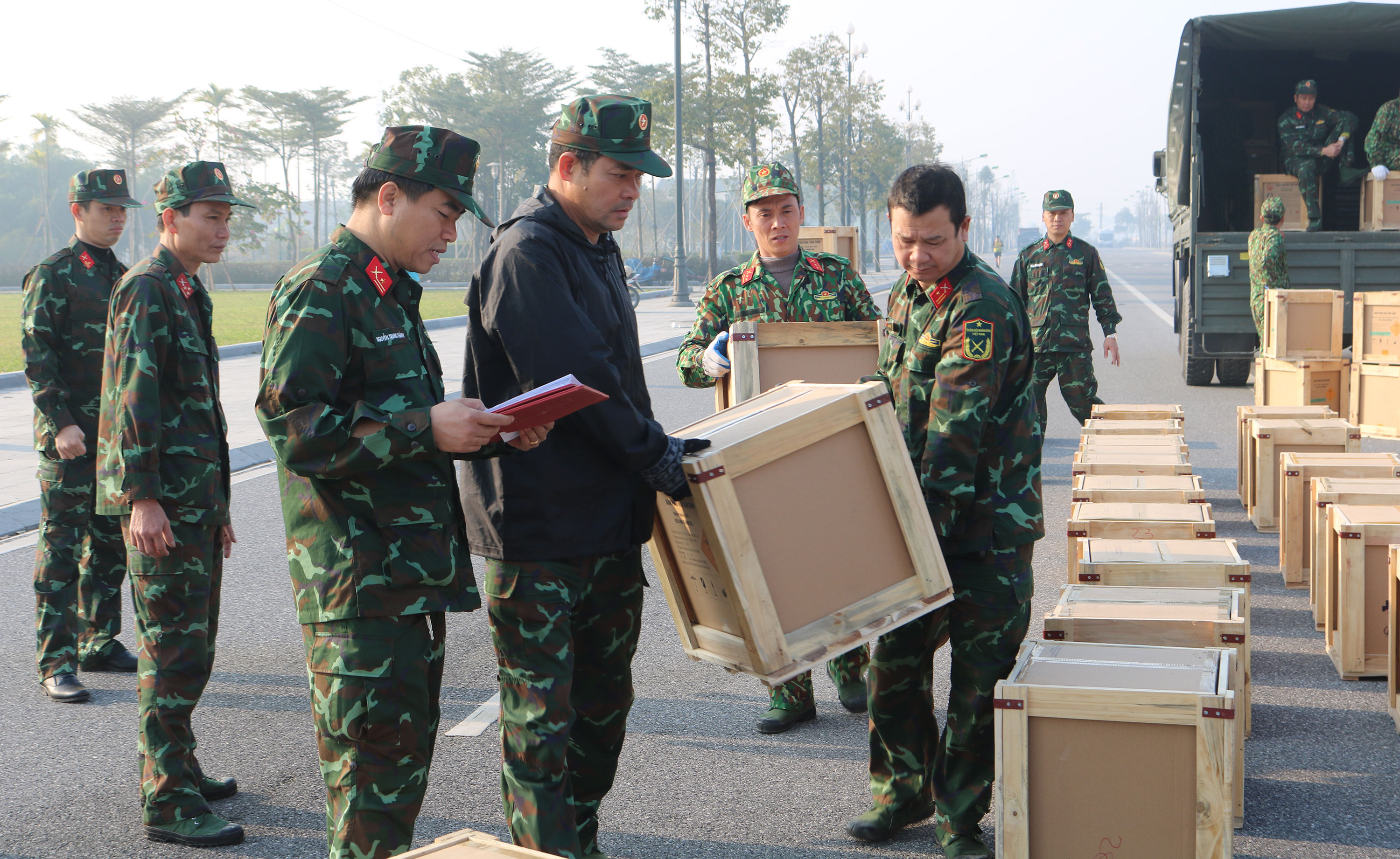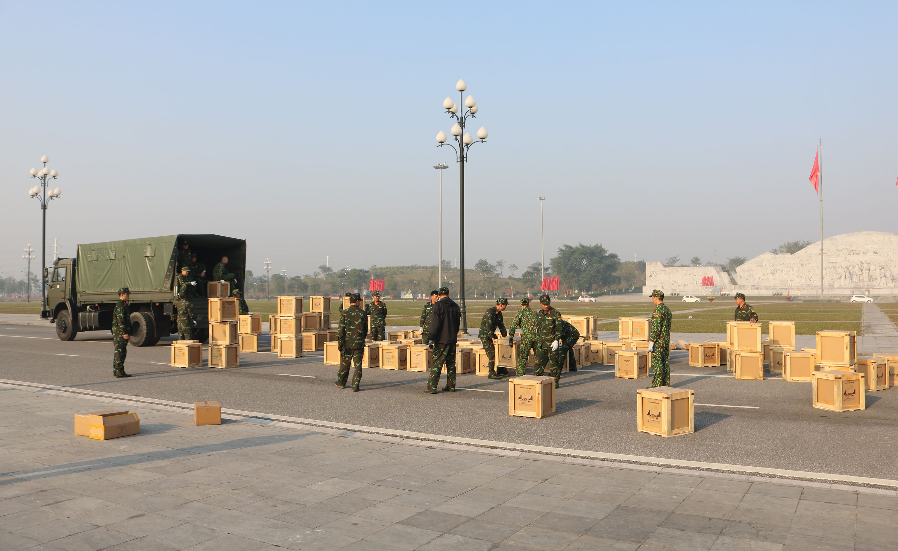 Pháo hoa được các đơn vị vận chuyển, tập kết tại trận địa trụ sở Tỉnh ủy cũ.
