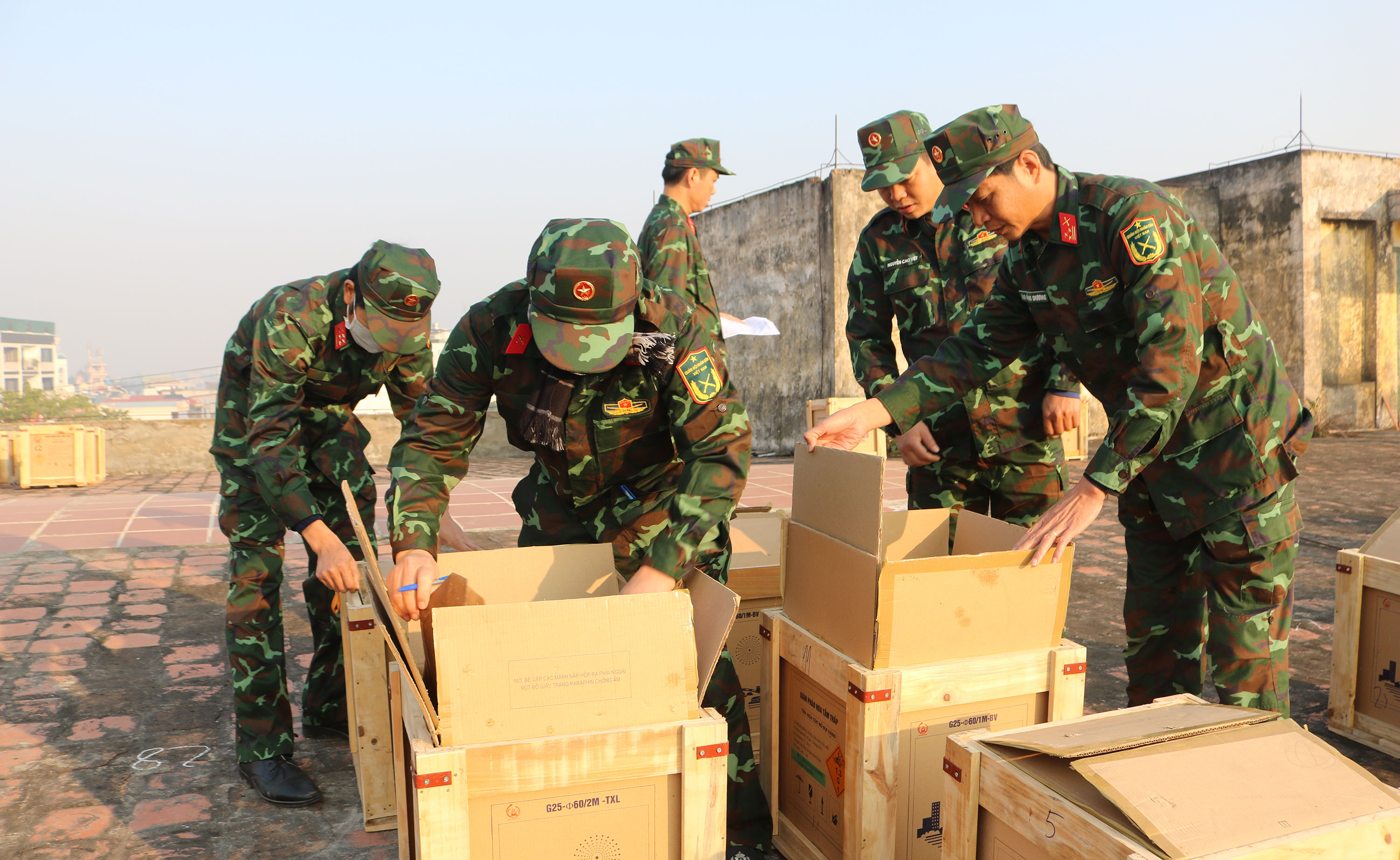 Pháo hoa được kiểm tra kỹ lưỡng, bảo đảm an toàn tại các trận địa.