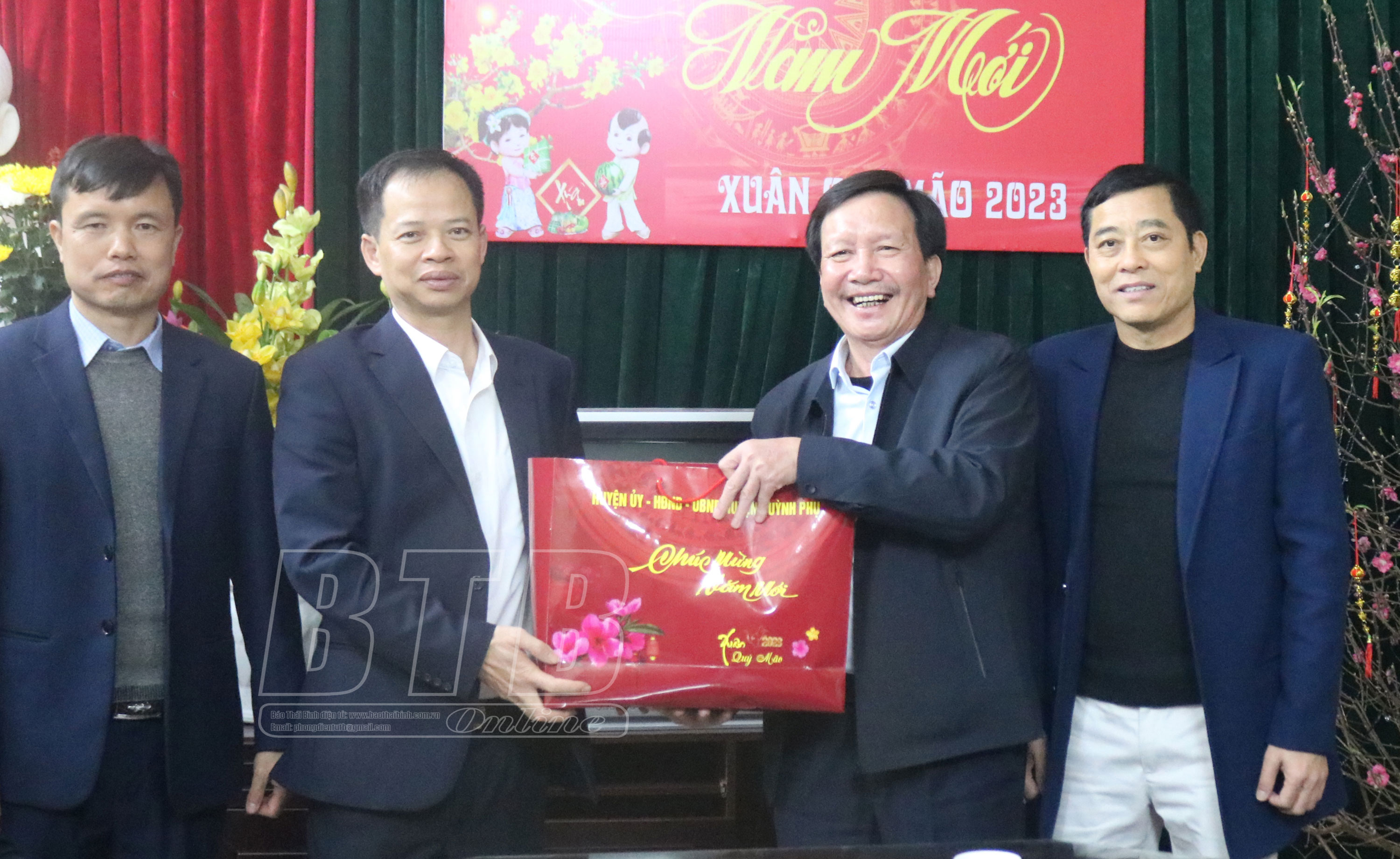 * Đồng chí Phạm Đồng Thụy, Ủy viên Ban Thường vụ, Trưởng ban Tuyên giáo Tỉnh ủy đã đến thăm, động viên, chúc tết Đảng bộ, chính quyền và nhân dân huyện Kiến Xương; kiểm tra công tác bảo đảm an ninh trật tự, trận địa sẵn sàng cho việc bắn pháo hoa trên địa bàn huyện.
