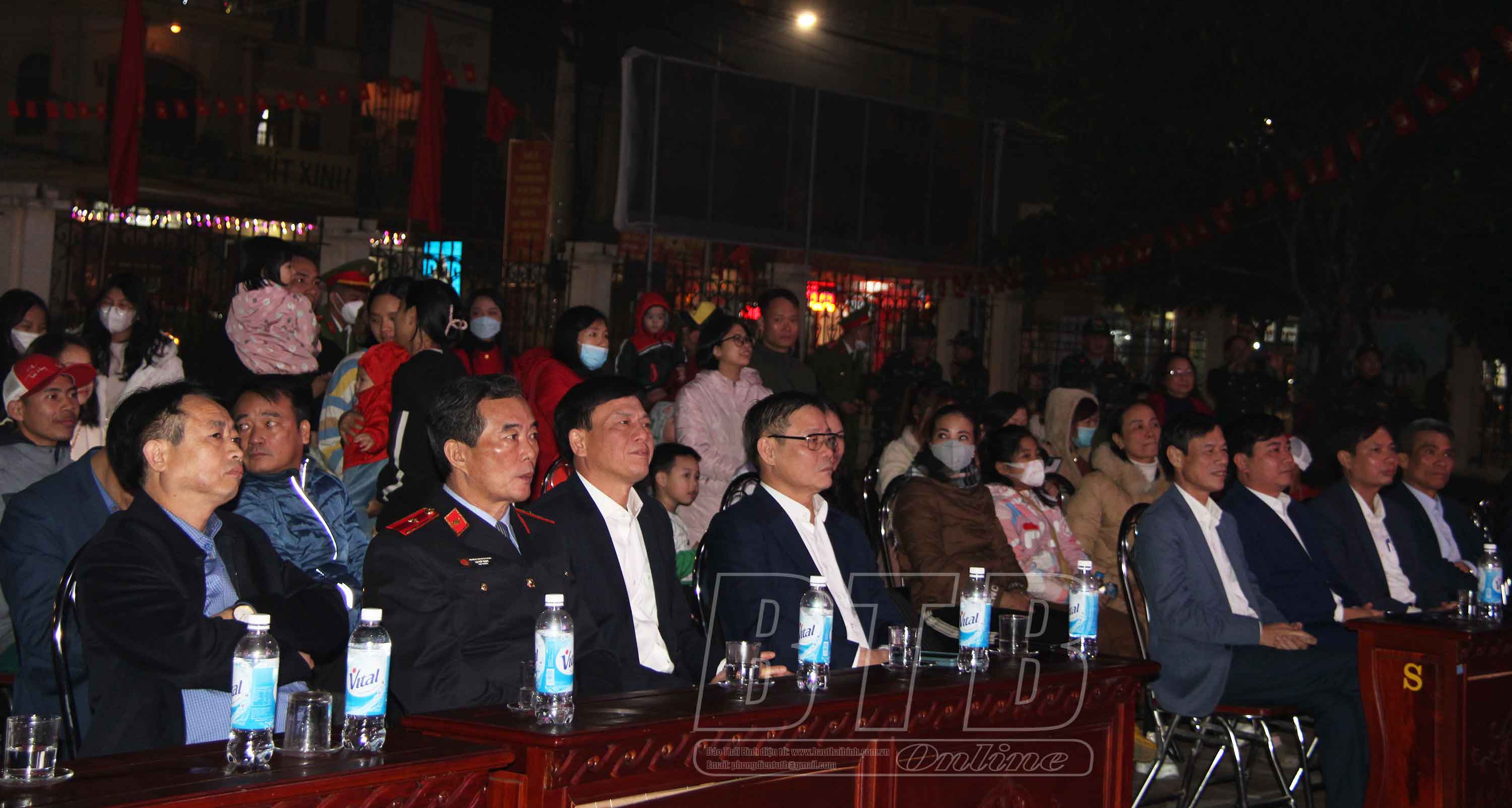 Đồng chí Vũ Kim Cứ, Ủy viên Ban Thường vụ Tỉnh ủy, Giám đốc Sở Kế hoạch và Đầu tư và các đại biểu dự chương trình văn nghệ mừng Đảng, mừng xuân. Ảnh: Thu Hiền