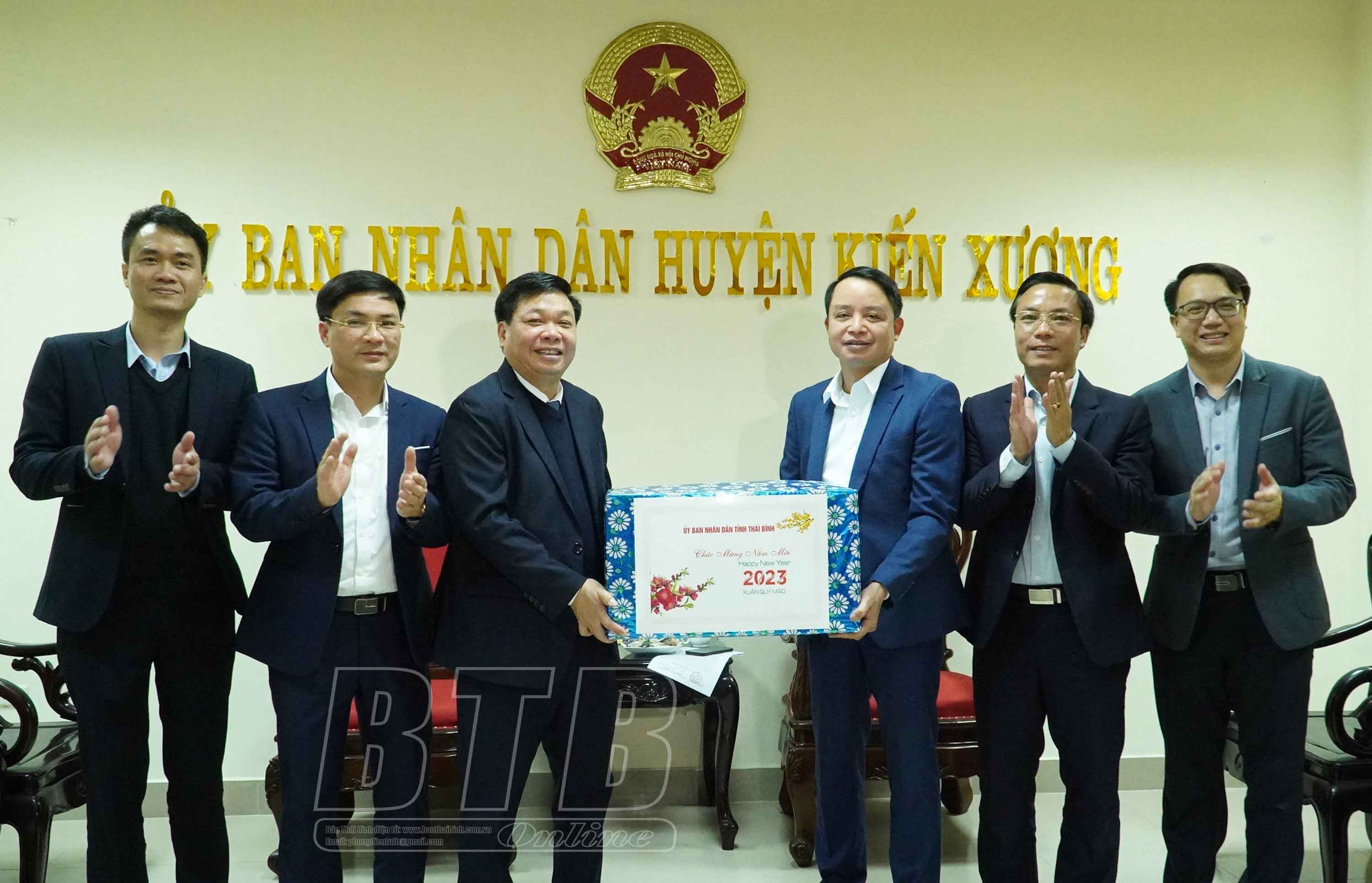 Đồng chí Nguyễn Quang Hưng, Ủy viên Ban Thường vụ Tỉnh ủy, Phó Chủ tịch thường trực UBND tỉnh tặng quà, chúc tết cấp ủy, chính quyền huyện Kiến Xương. Ảnh: Khắc Duẩn