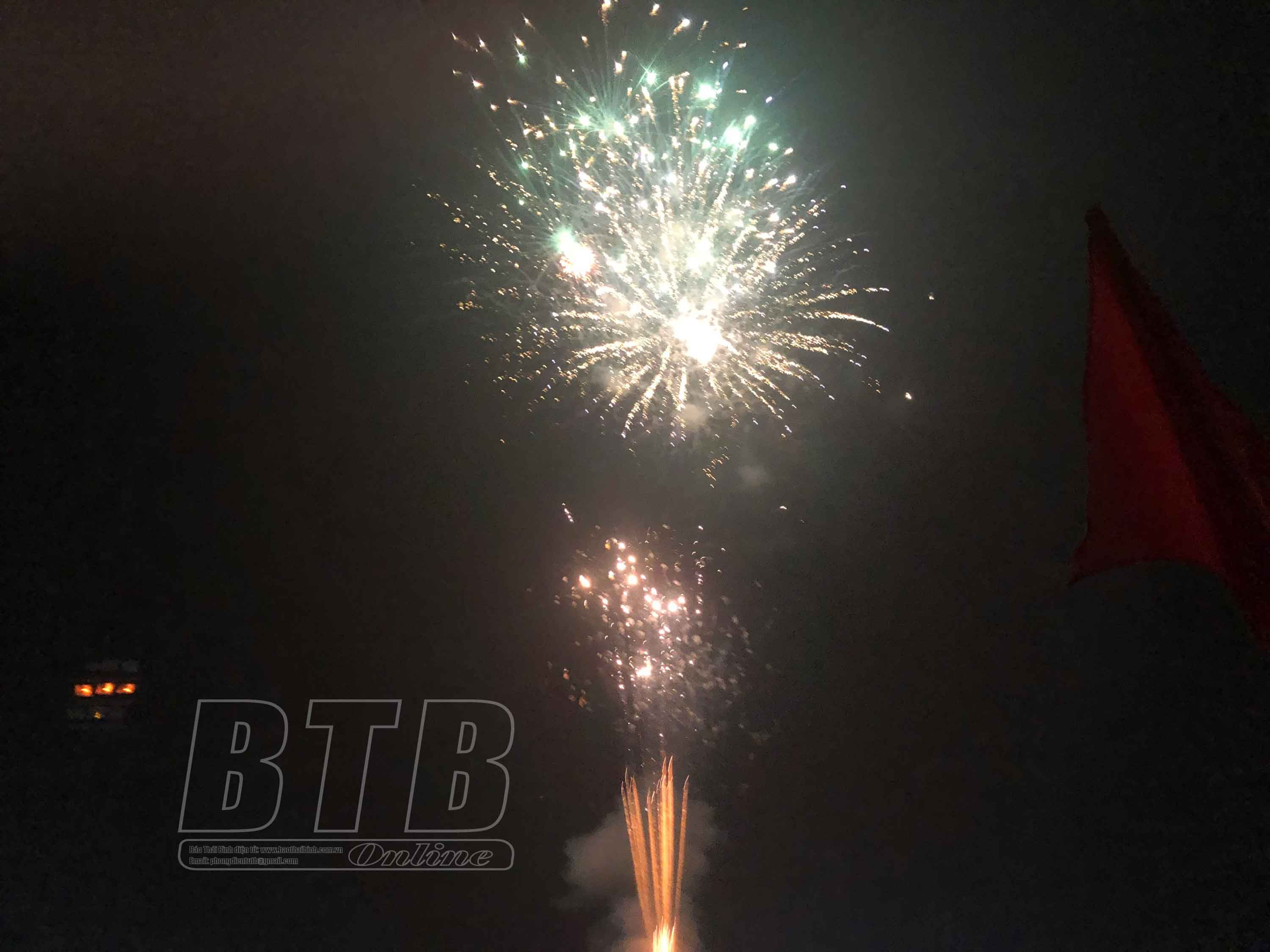 Màn bắn pháo hoa đêm giao thừa tại huyện Hưng Hà. Ảnh: Thanh Thủy
