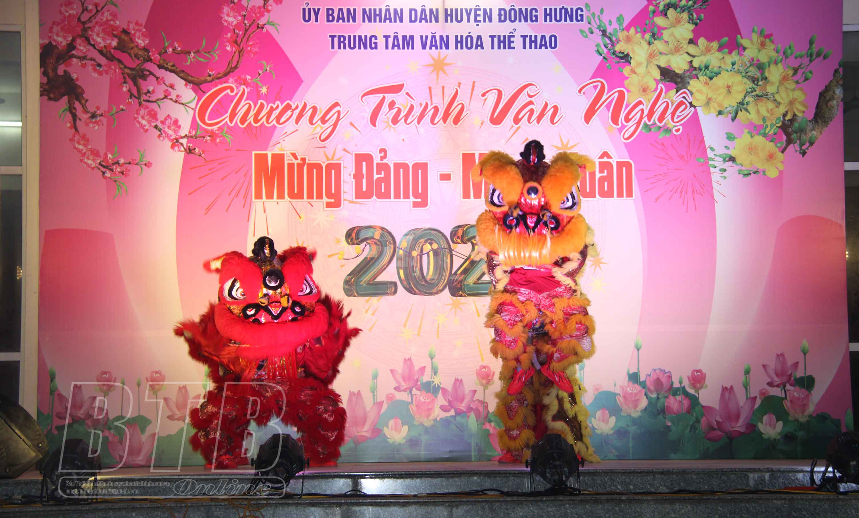 Màn múa lân tại đêm văn nghệ. Ảnh: Thu Hiền