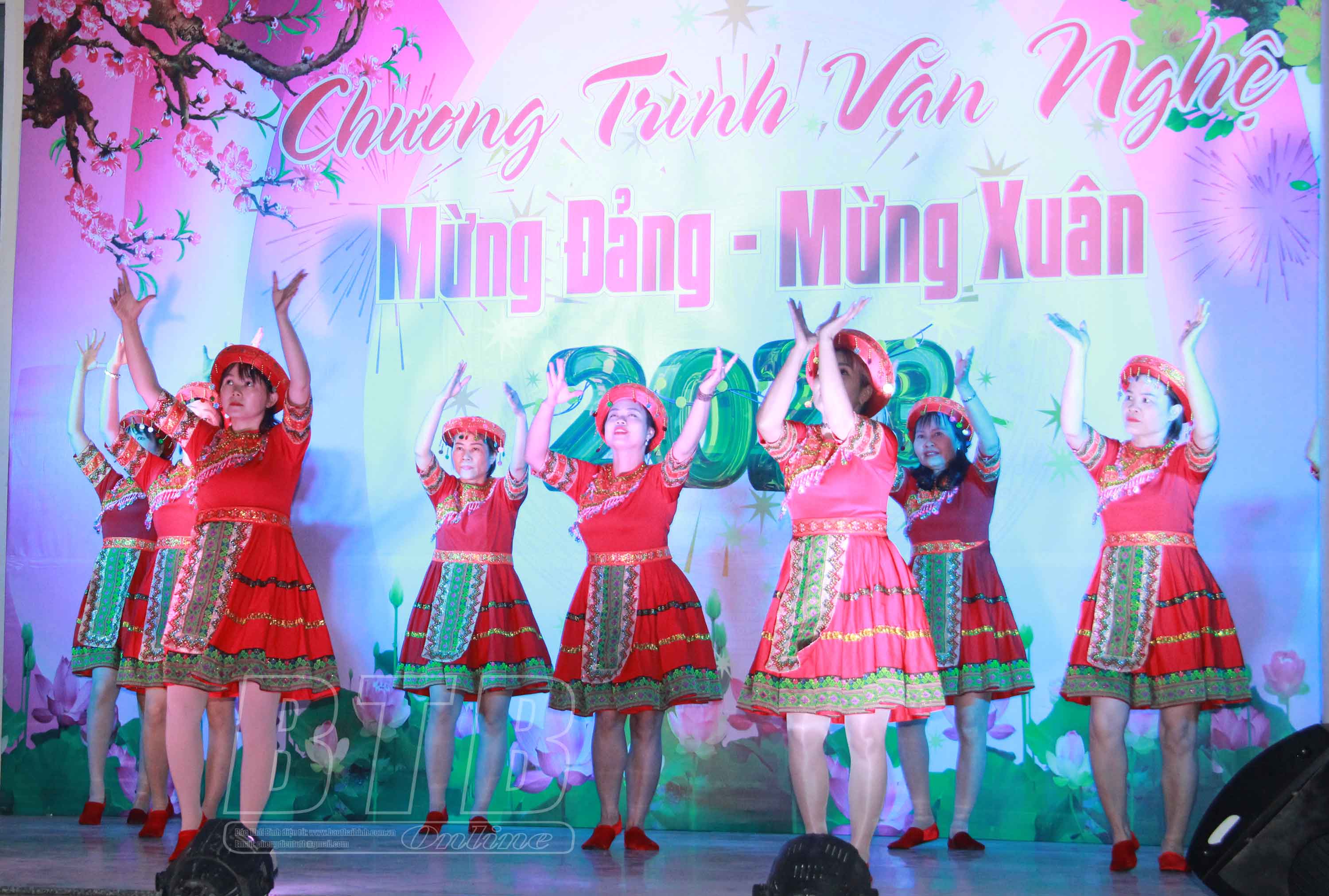 Các tiết mục văn nghệ mừng Đảng, mừng xuân. Ảnh: Thu Hiền