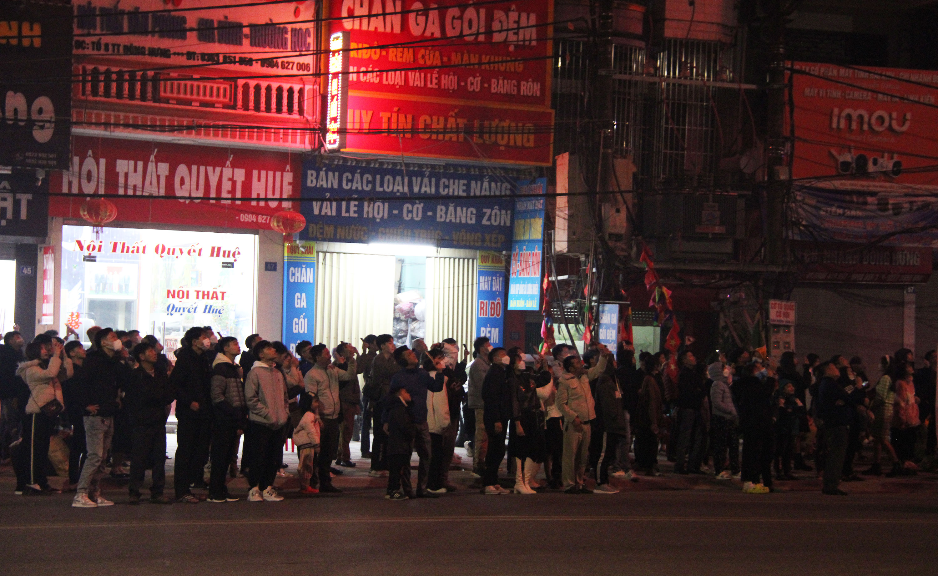 Người dân háo hức xem bắn pháo hoa.