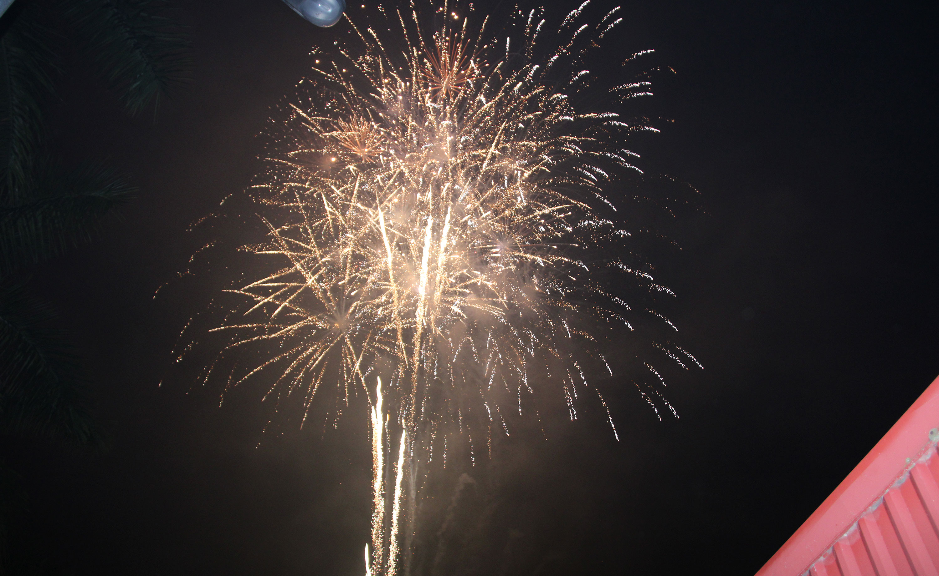 Những chùm pháo hoa rực sáng trên bầu trời, tạo không khí sôi nổi đêm giao thừa.
