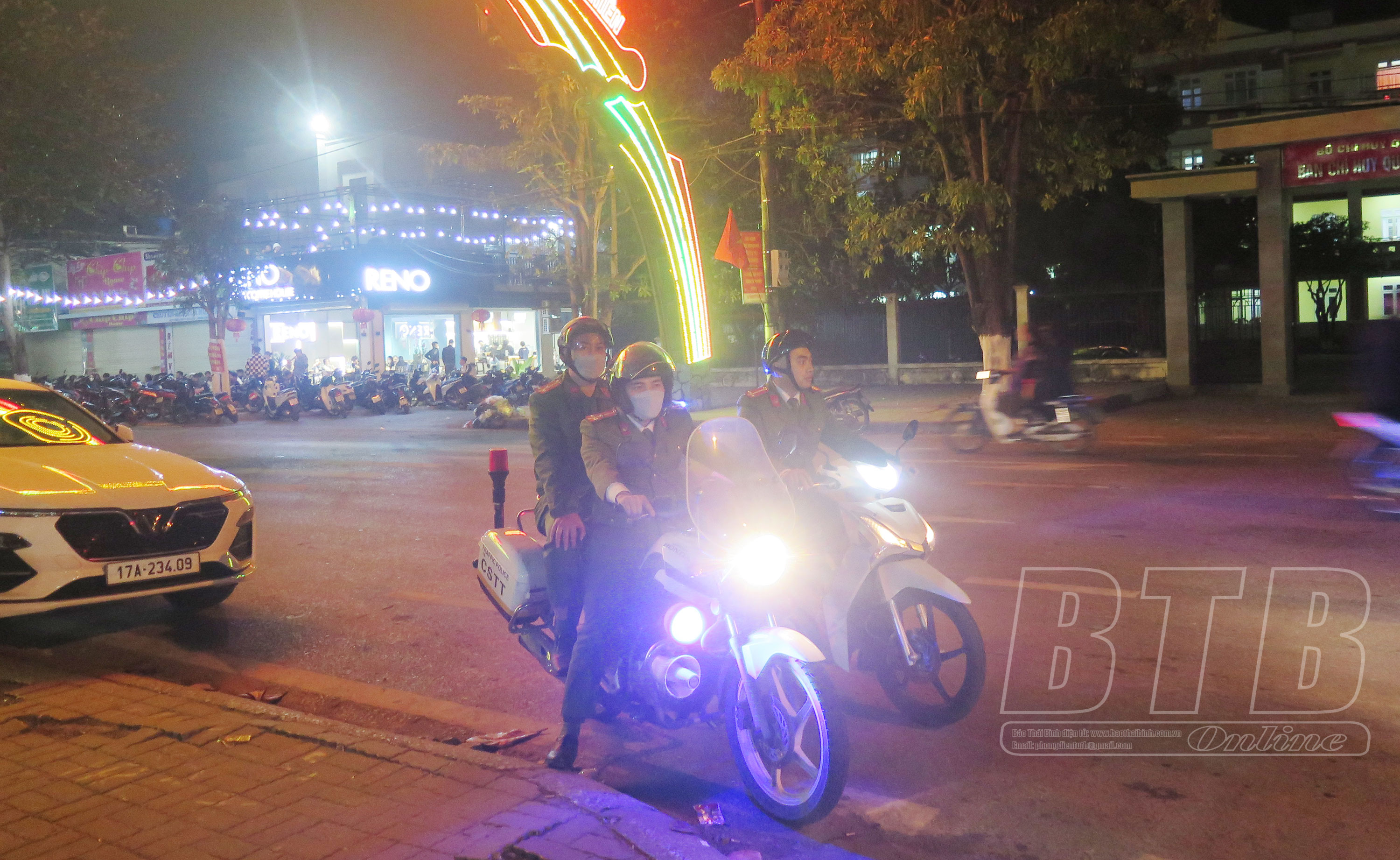 Lực lượng Công an huyện Kiến Xương tuần tra xung quanh khu vực bắn pháo hoa.