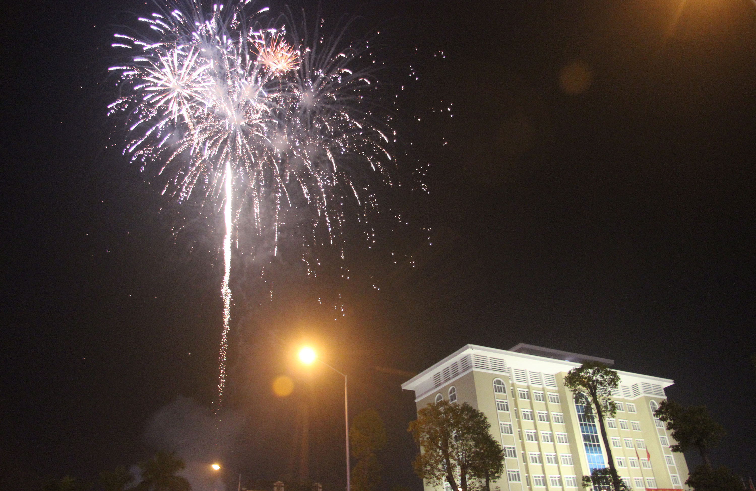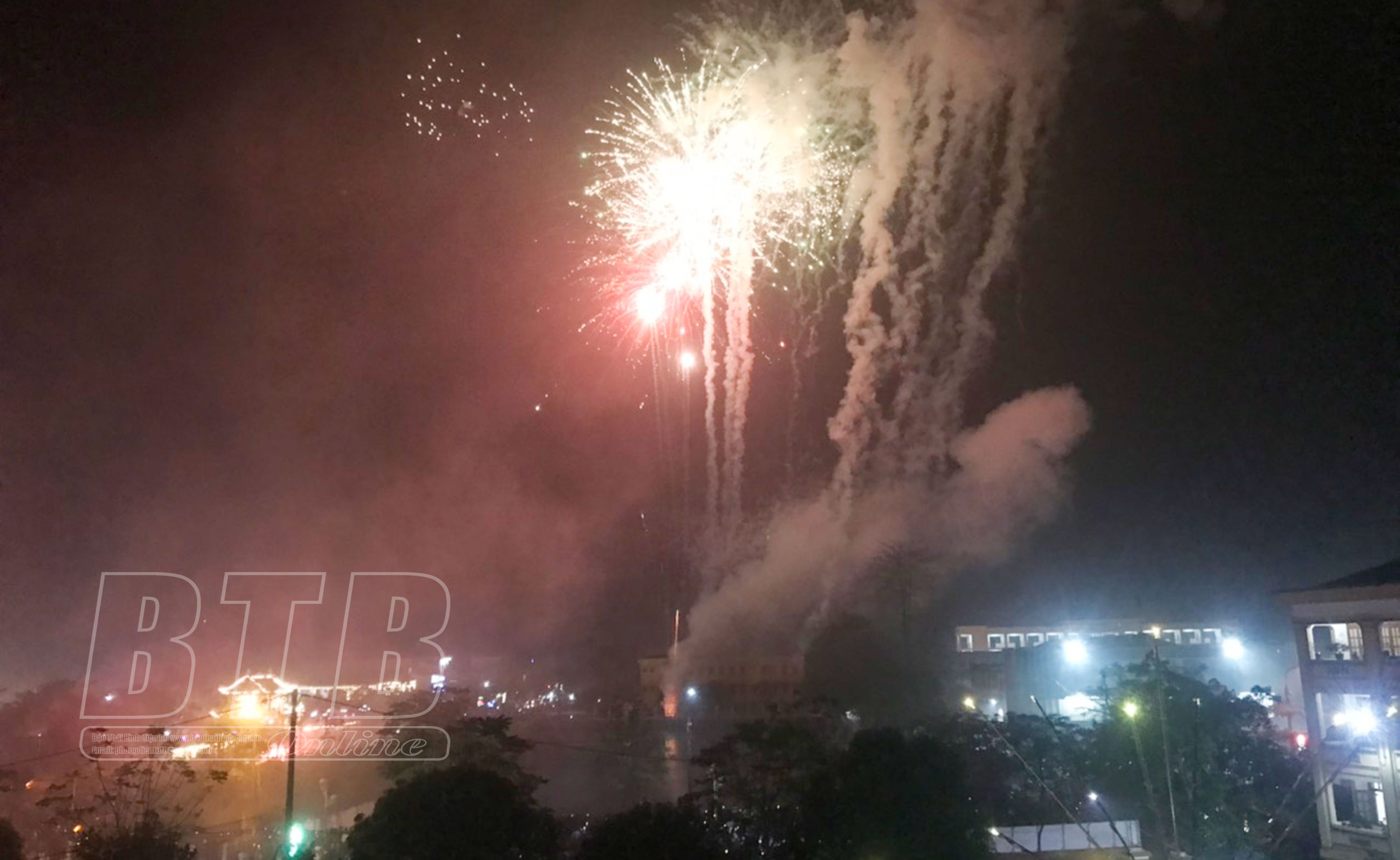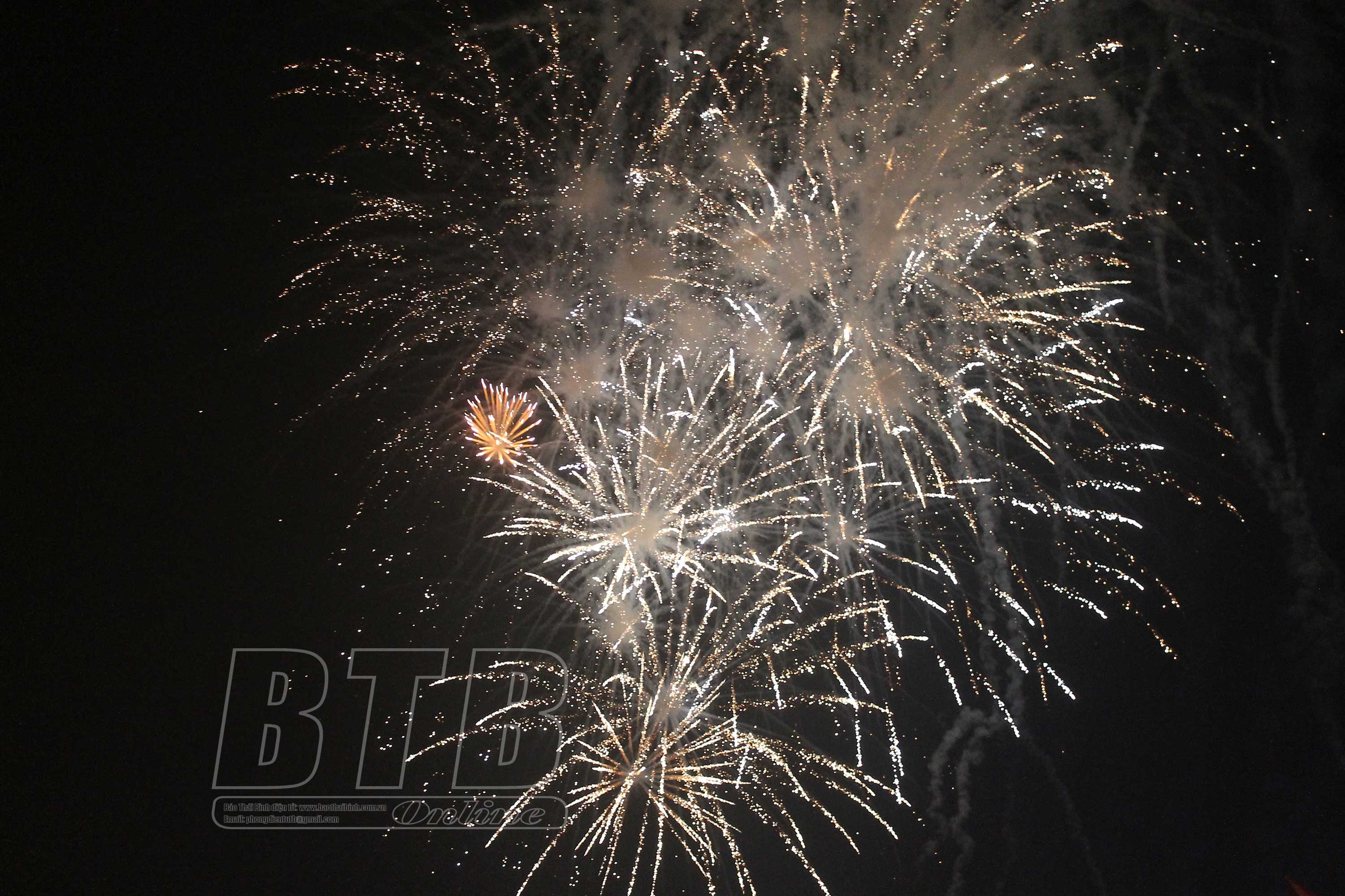 Màn bắn pháo hoa tại trung tâm huyện Tiền Hải.
