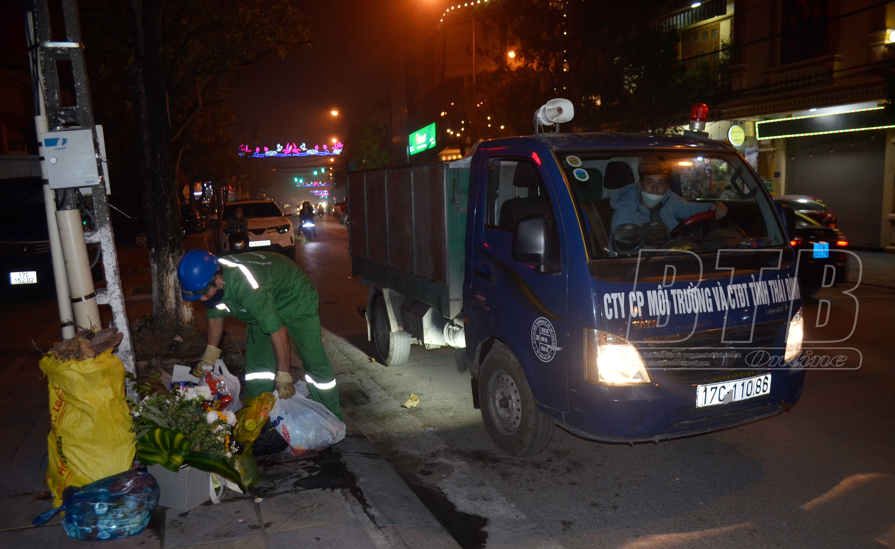 Đêm giao thừa nhưng công nhân Công ty Cổ phần Môi trường và Công trình đô thị Thái Bình vẫn miệt mài thu gom rác thải.