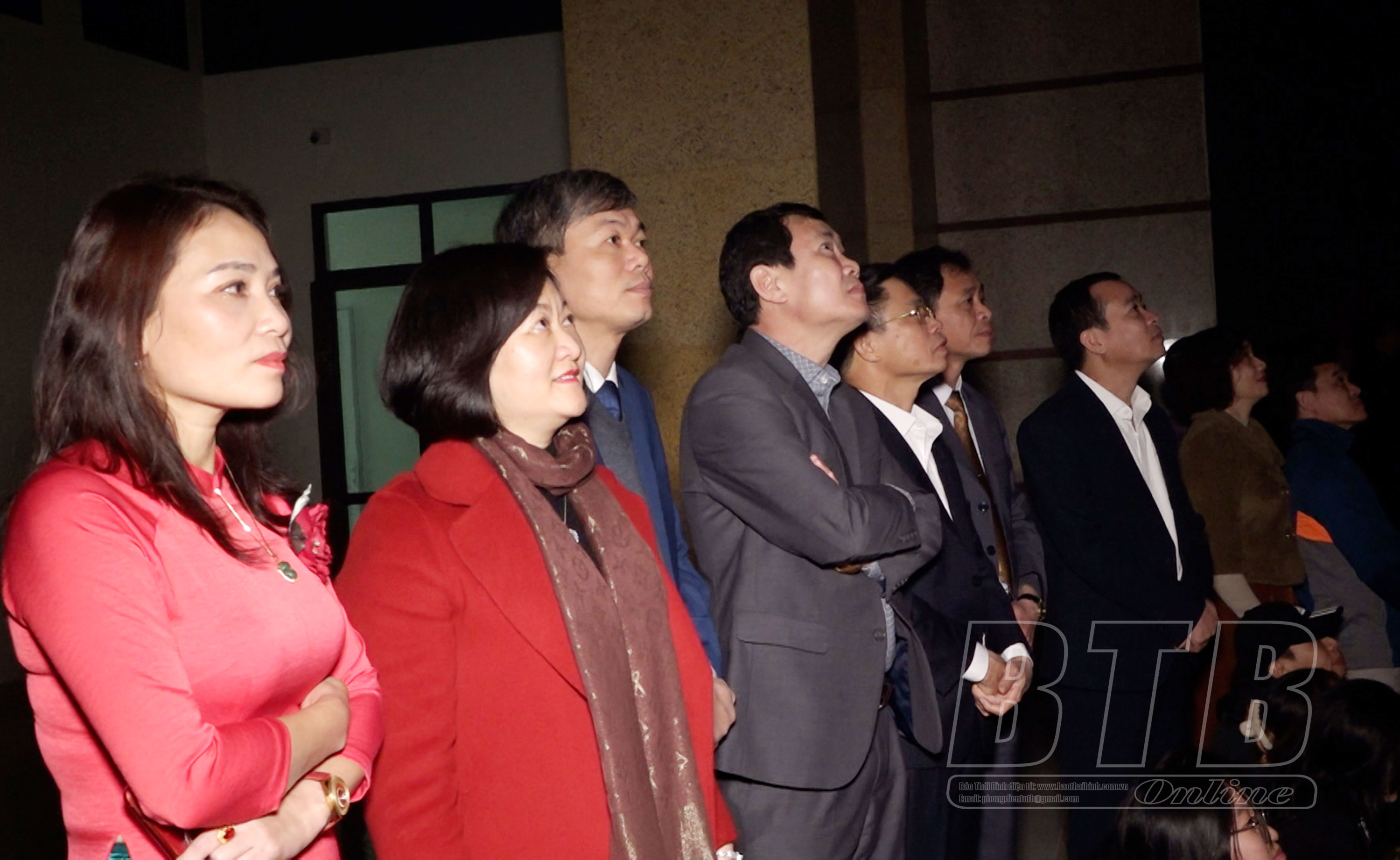 Lãnh đạo huyện Thái Thụy và người dân xem màn bắn pháo hoa.