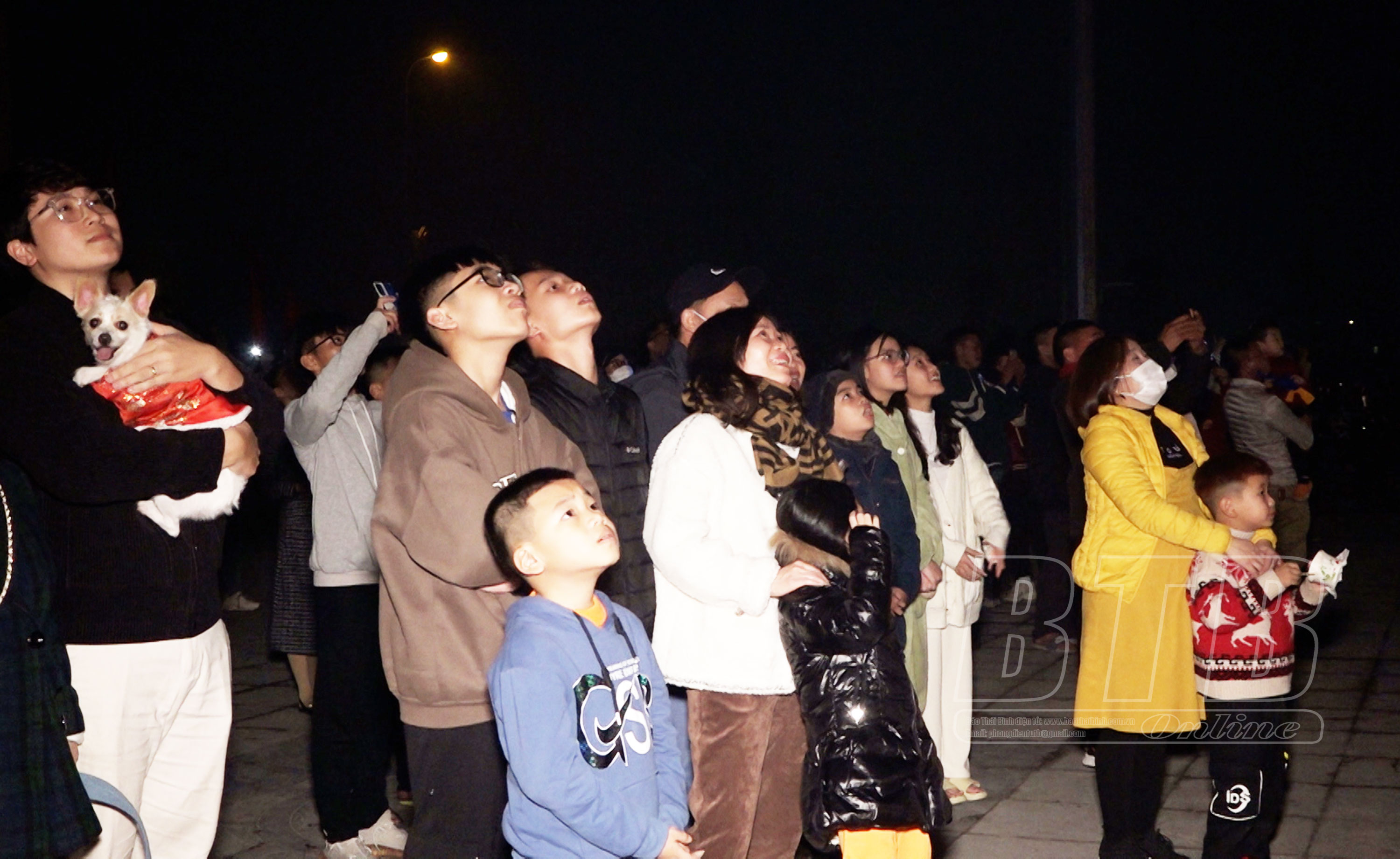Năm nay, huyện Thái Thụy tổ chức nhiều hoạt động chào đón năm mới thu hút sự quan tâm của nhiều người, đặc biệt là các bạn trẻ. Ngay từ 20 giờ, hàng ngàn người dân nô nức đổ về trung tâm thị trấn Diêm Điền. Càng gần đến thời khắc giao thừa, lượng người đổ về Trung tâm Văn hóa - Thể thao huyện (thị trấn Diêm Điền) để xem màn bắn pháo hoa càng tấp nập. Đúng 00 giờ 00 phút, chương trình bắn pháo hoa bắt đầu với loạt tiếng nổ vang rền, từng chùm pháo hoa lung linh, đủ màu sắc sáng rực trời trong tiếng trầm trồ, sự mãn nhãn của hàng nghìn người xem. Nhiều người đã dùng điện thoại quay clip, chụp ảnh ghi lại thời khắc chuyển giao năm mới để làm kỷ niệm.