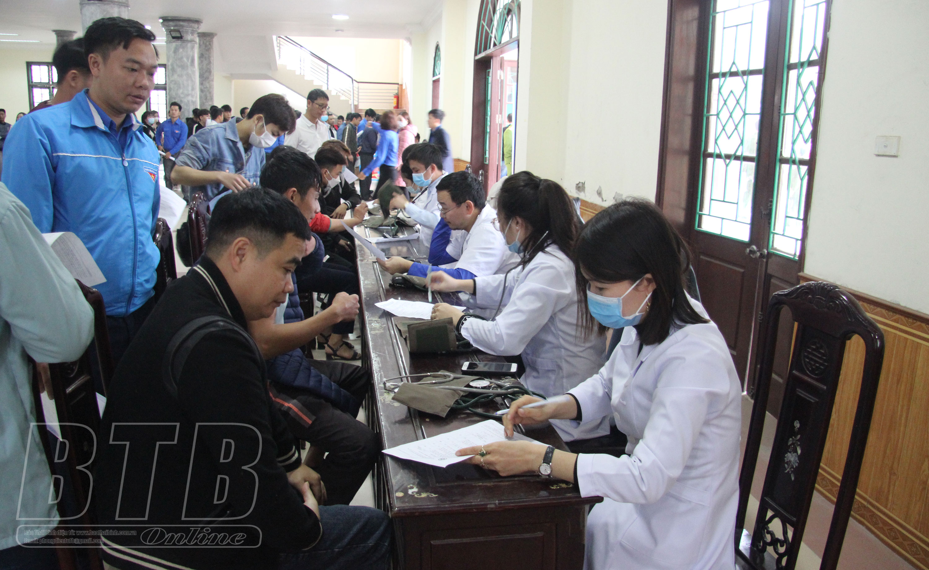 Các đoàn viên thanh niên tham gia tích cực ngày hội hiến máu tình nguyện của huyện Tiền Hải.