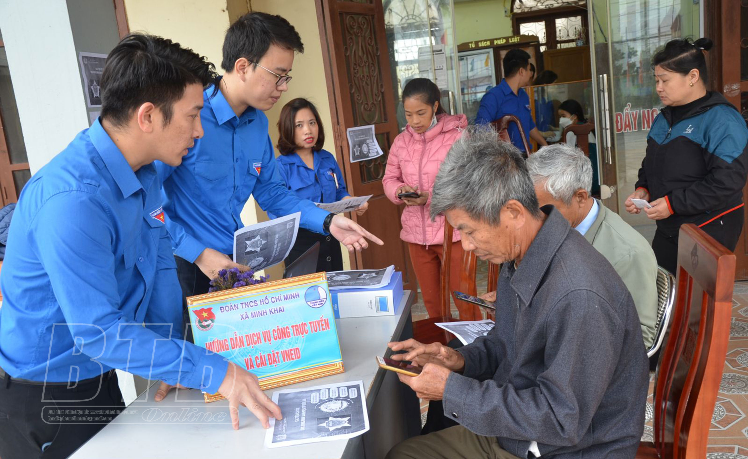Đoàn Thanh niên huyện Hưng Hà tổ chức hướng dẫn người dân thực hiện các dịch vụ công trực tuyến.