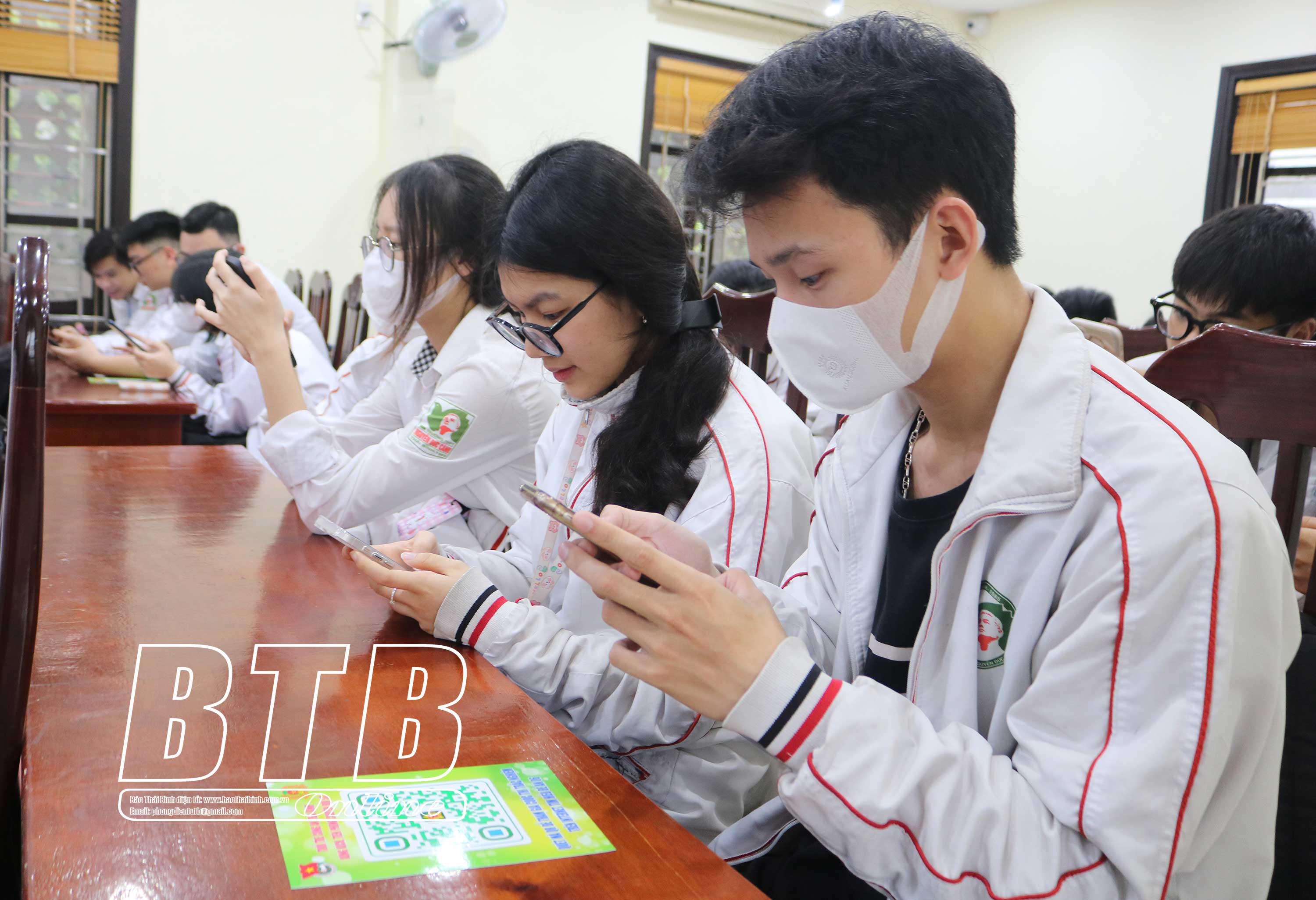 Học sinh Trường THPT Nguyễn Đức Cảnh (thành phố Thái Bình) tham gia cuộc thi trắc nghiệm trên internet tìm hiểu Đề án 06.