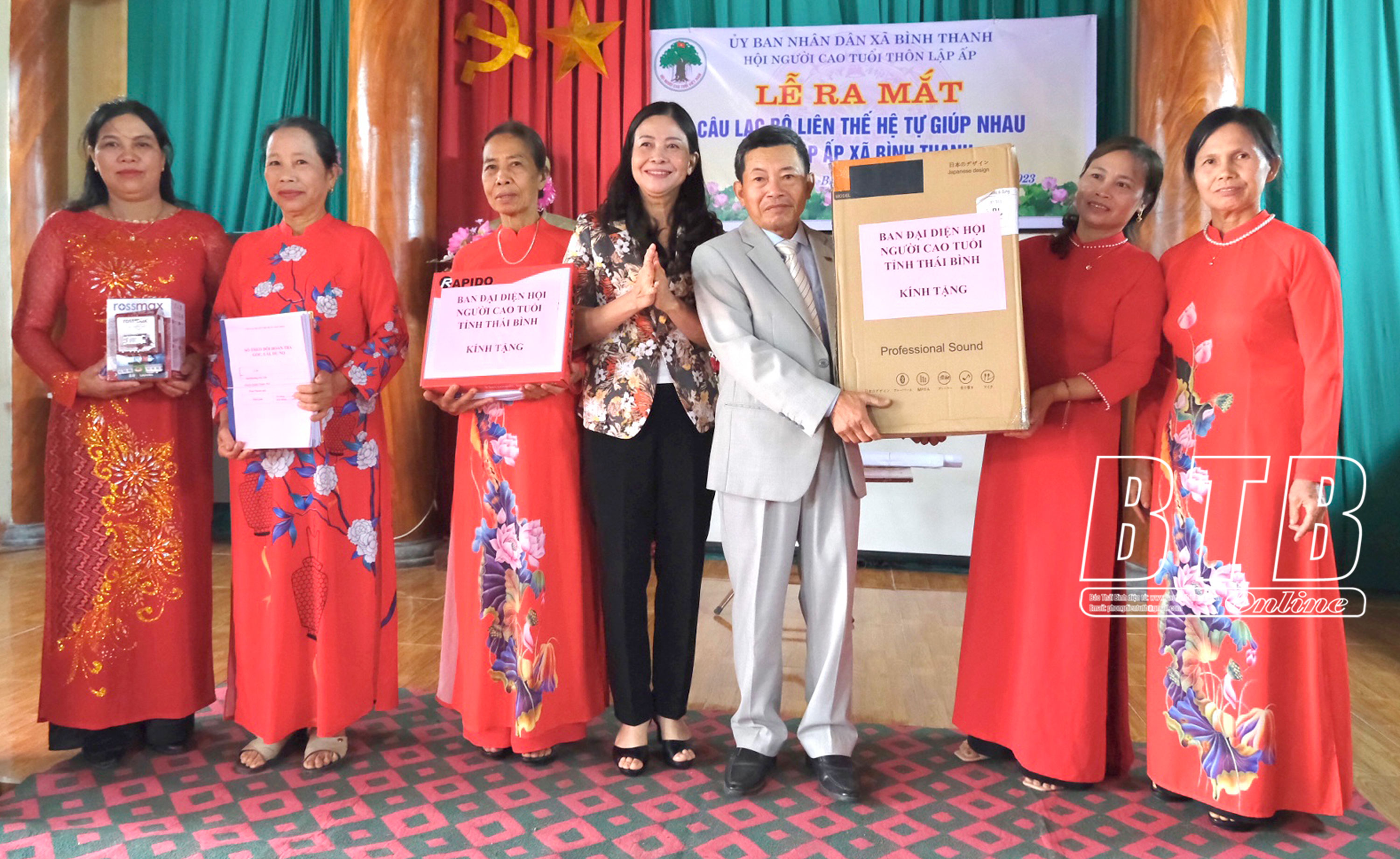 Lãnh đạo xã Bình Thanh trao quyết định thành lập Câu lạc bộ Liên thế hệ tự giúp nhau thôn Lập Ấp.