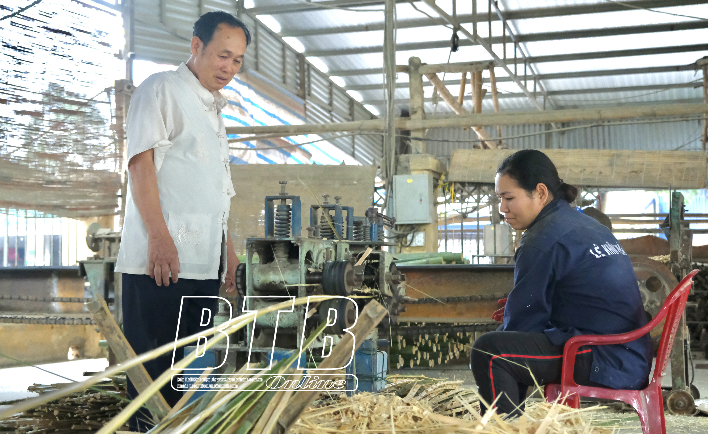 Xưởng sản xuất mành tre, trúc của ông Hoàng Văn Nghênh, tổ dân phố Tây Xuyên, thị trấn Hưng Nhân (Hưng Hà).