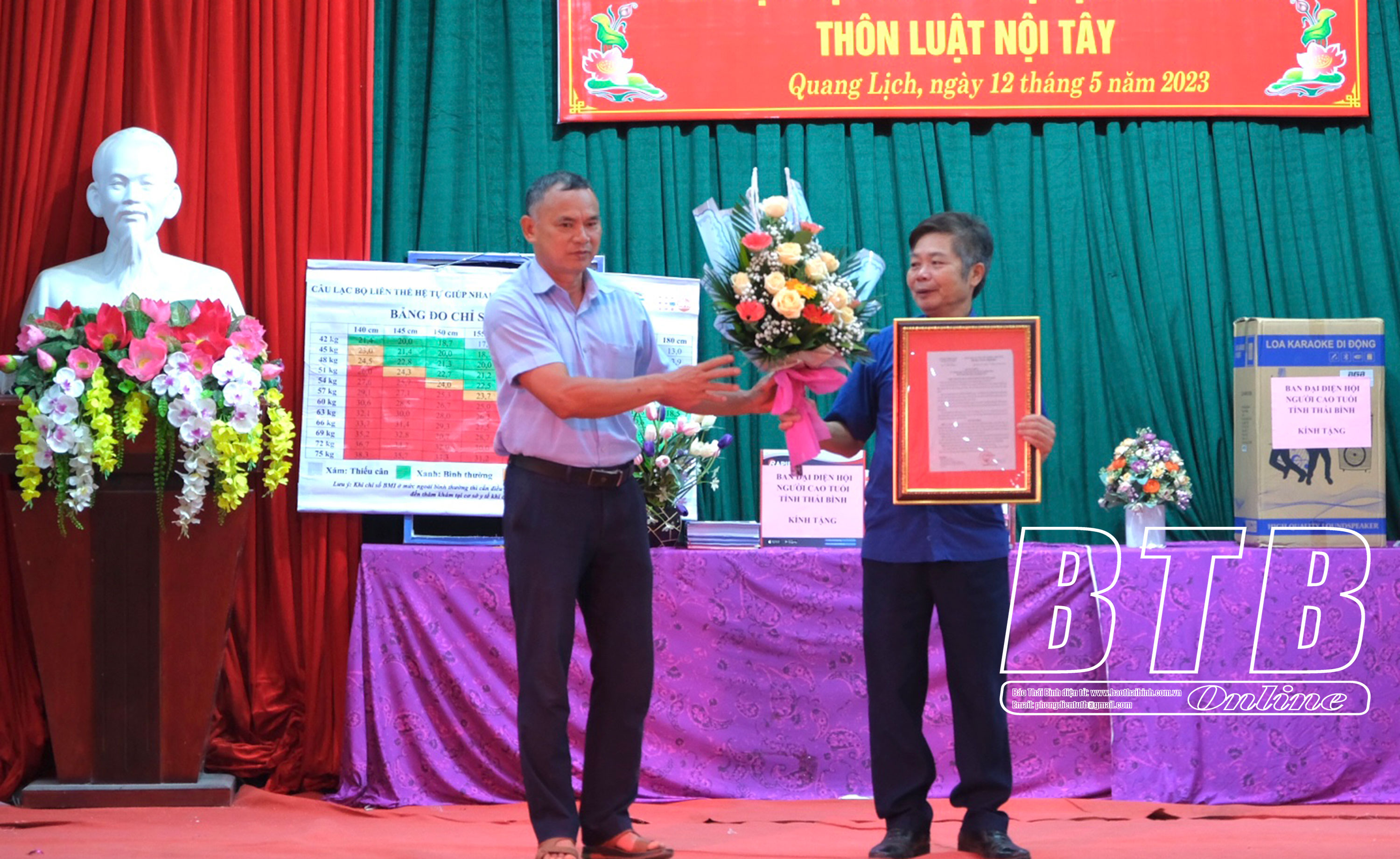 Lãnh đạo xã Quang Lịch trao quyết định thành lập CLB Liên thế hệ tự giúp nhau thôn Luật Nội Tây.