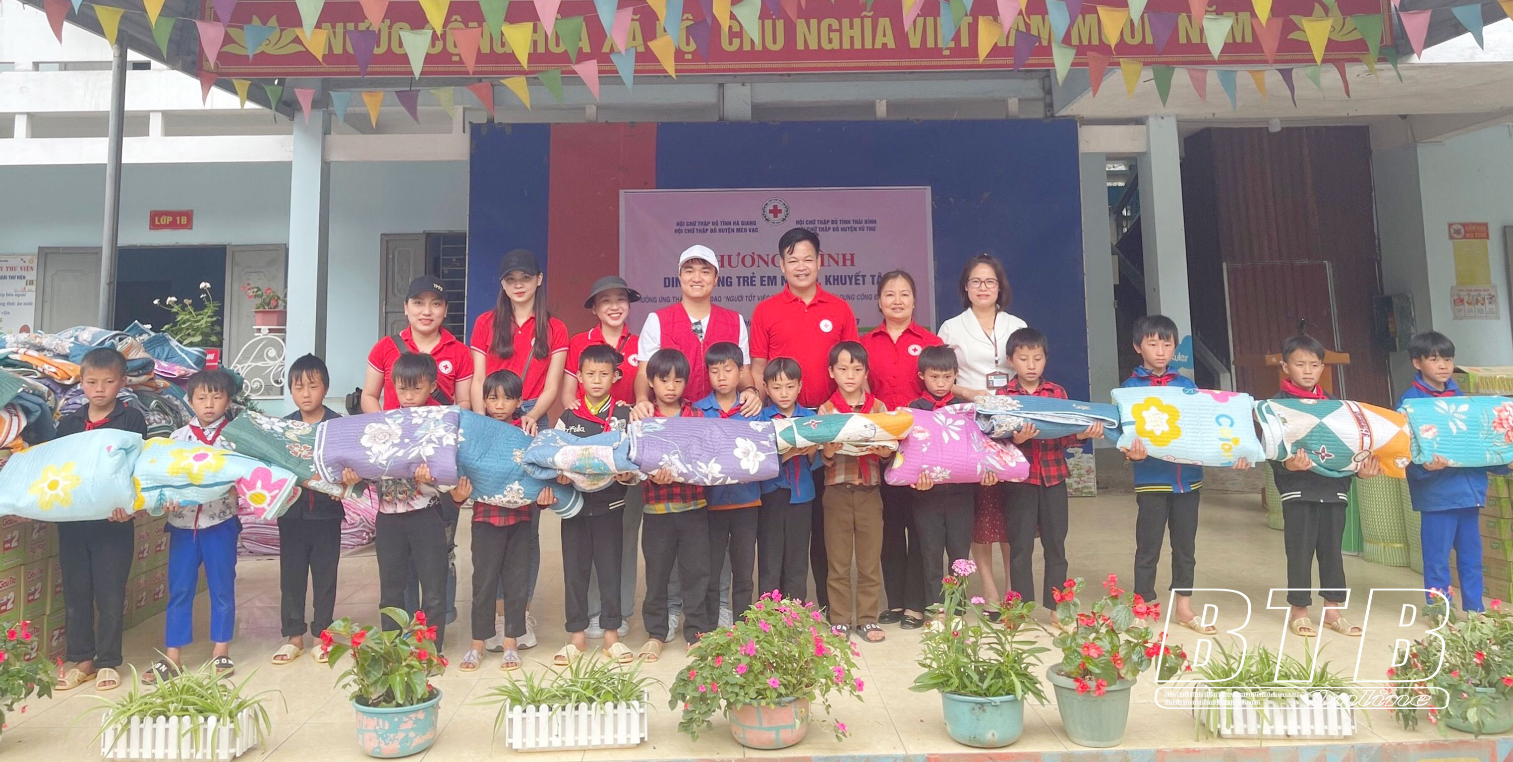 Học sinh có hoàn cảnh khó khăn của Trường Tiểu học Giàng Chu Phìn được nhận nhu yếu phẩm từ sự vận động, hỗ trợ của Hội Chữ thập đỏ tỉnh, Hội Chữ thập đỏ huyện Vũ Thư.