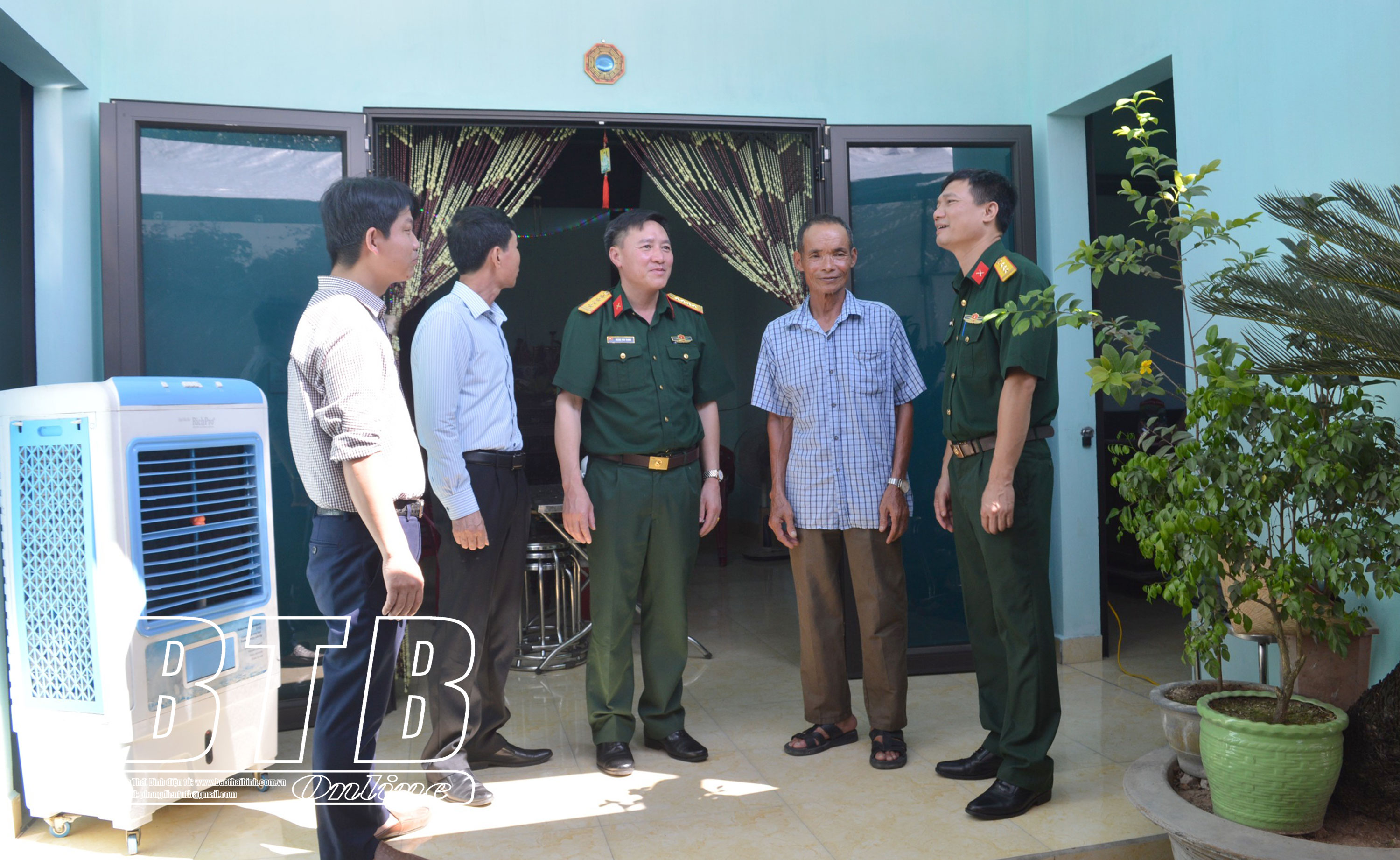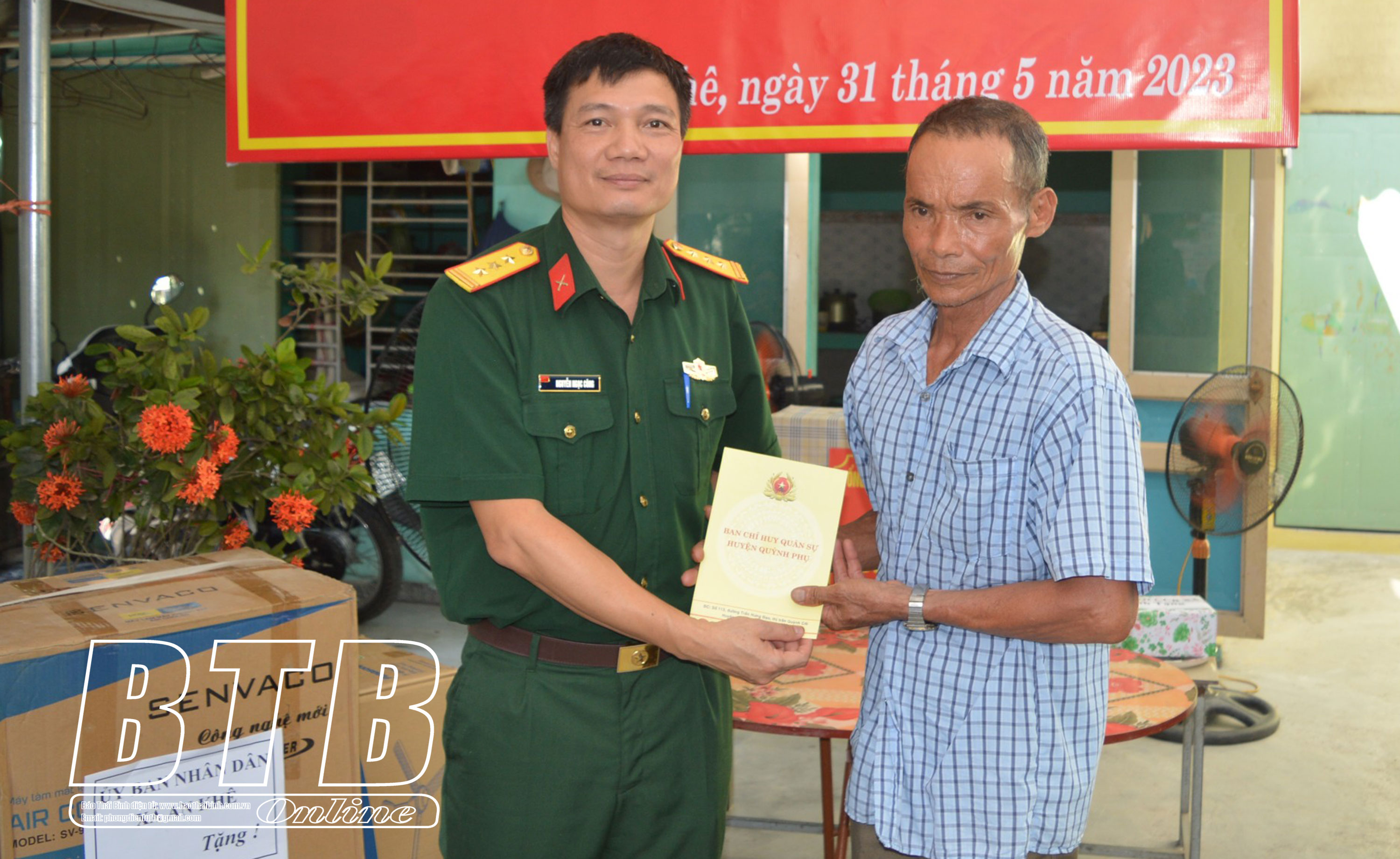 Đại diện Ban Chỉ huy Quân sự huyện Quỳnh Phụ trao quà cho ông Chu Công Đãng.