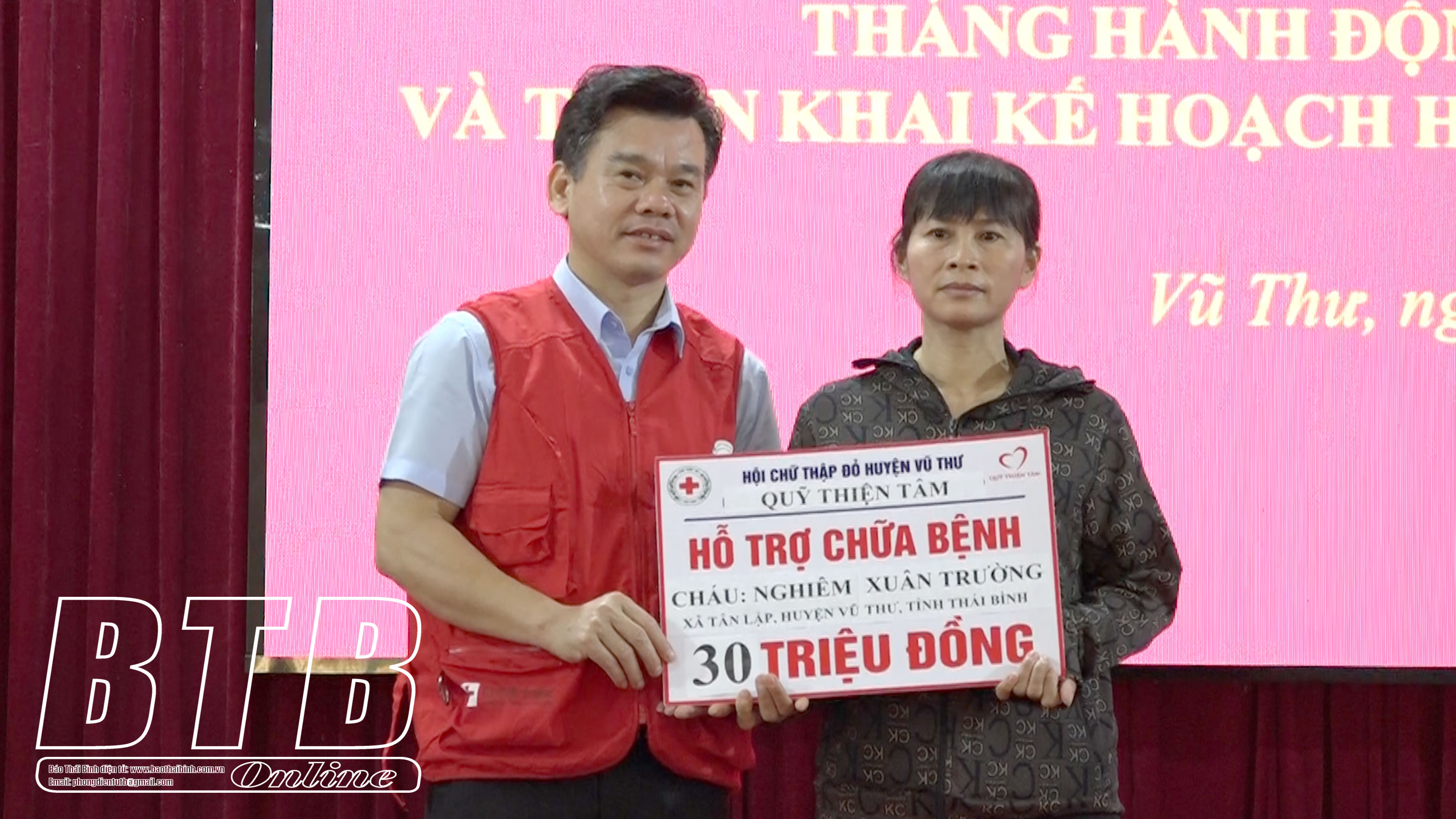 Nhân tháng hành động vì trẻ em, các đồng chí lãnh đạo Tỉnh đoàn, Hội Chữ thập đỏ tỉnh, UBND huyện Vũ Thư, Huyện đoàn, Hội Chữ thập đỏ huyện, Câu lạc bộ thanh niên khởi nghiệp huyện đã trao 83 suất quà tổng trị giá trên 50 triệu đồng cho trẻ em có hoàn cảnh khó khăn. Đặc biệt, trao 30 triệu đồng từ Quỹ Thiện Tâm (Tập đoàn Vingroup) cho gia đình em Nghiêm Xuân Trường, trẻ em có hoàn cảnh đặc biệt khó khăn xã Tân Lập.