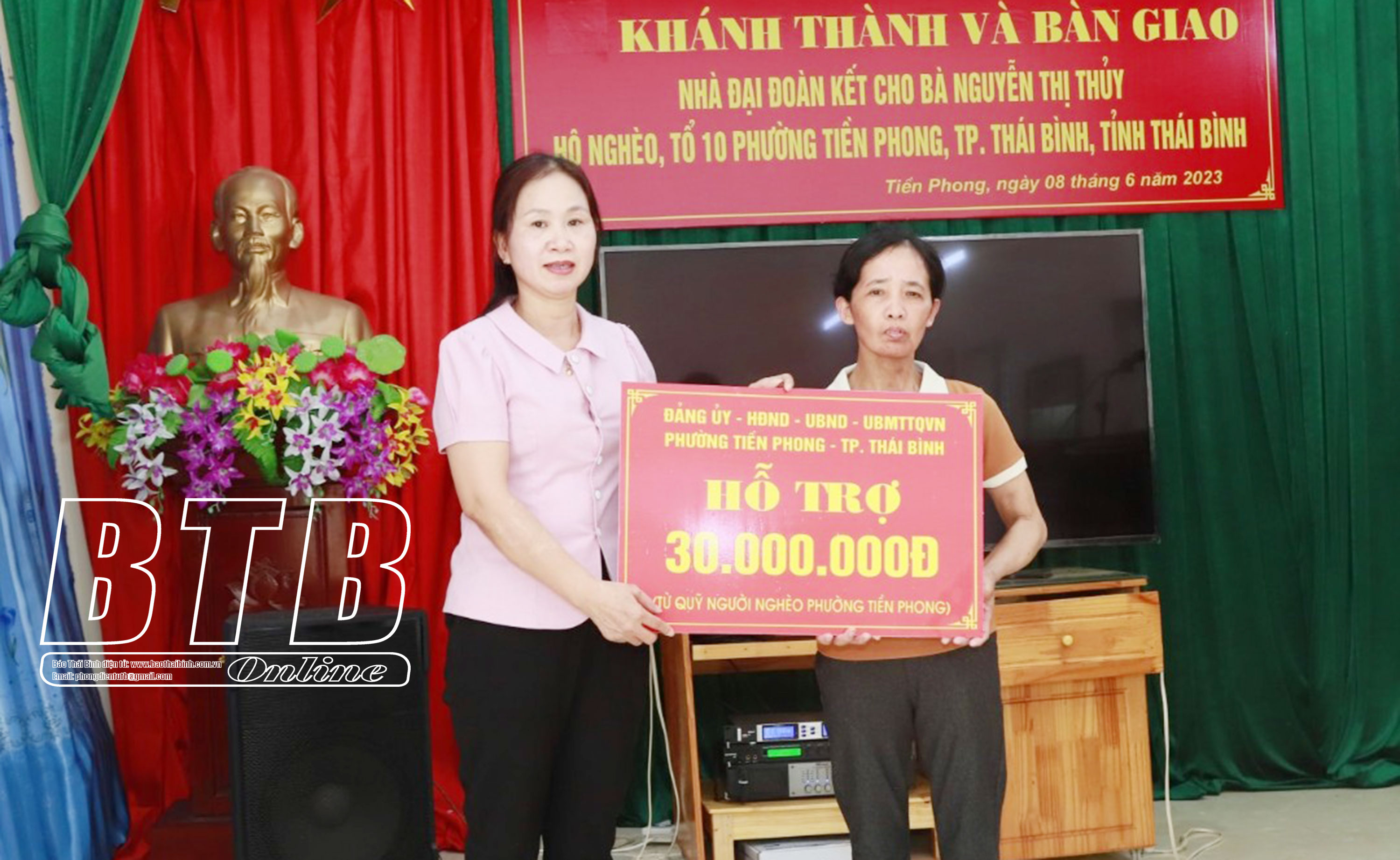 Bà Nguyễn Thị Thủy thuộc diện hộ nghèo, sống cùng con gái bị khuyết tật; cuộc sống gặp nhiều khó khăn do bà Thủy không có công việc ổn định lại thường xuyên ốm đau. Căn nhà của gia đình bà Thủy đã xuống cấp trầm trọng, nguy hiểm mỗi khi mùa mưa bão đến. Trước hoàn cảnh khó khăn đó, Ủy ban MTTQ phường Tiền Phong đã thống nhất với chính quyền địa phương tuyên truyền, ủng hộ kinh phí xây dựng ngôi nhà mới cho bà Thủy.