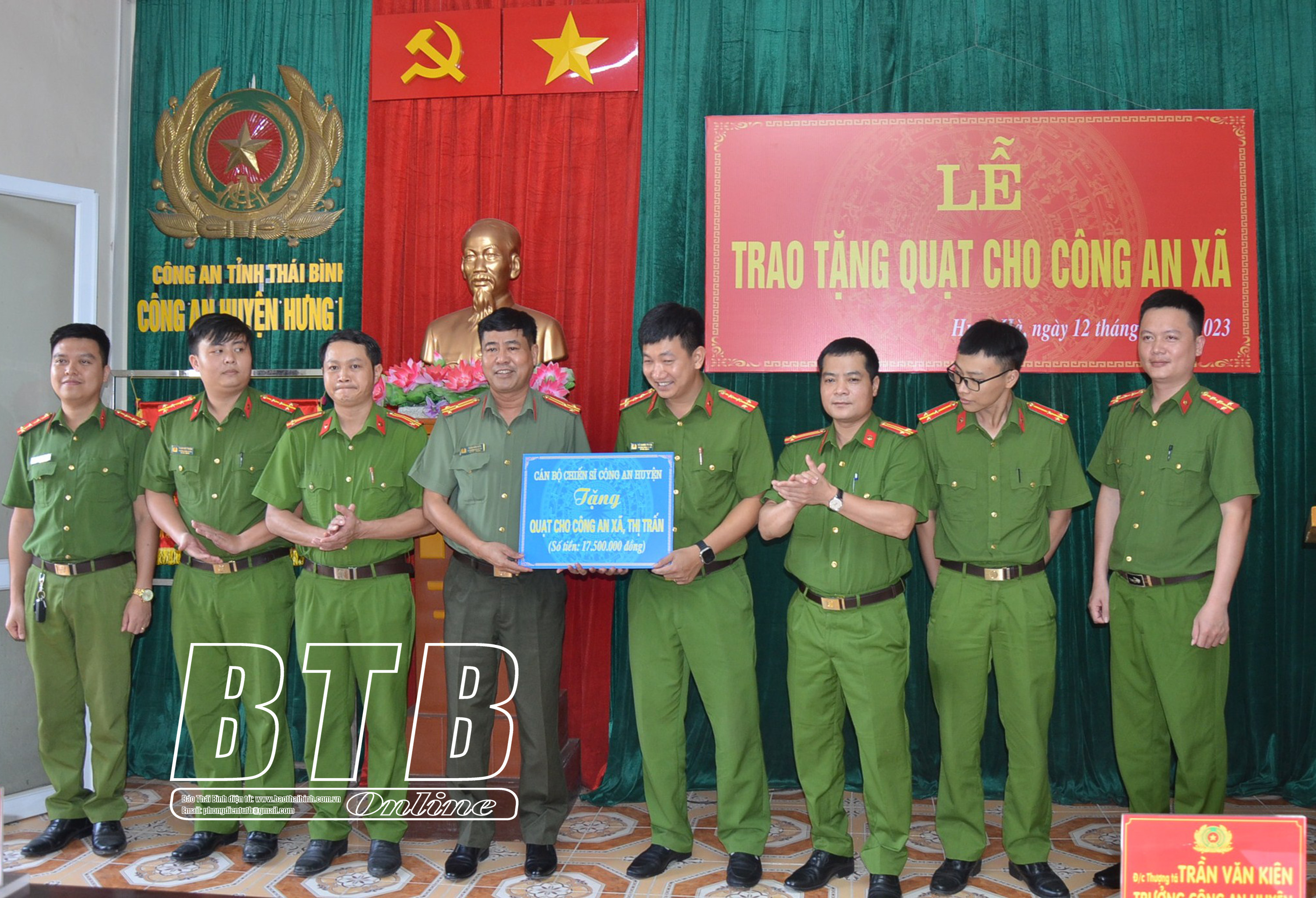 Trao tặng kinh phí mua quạt trần cho doanh trại công an 12 xã của huyện Hưng Hà