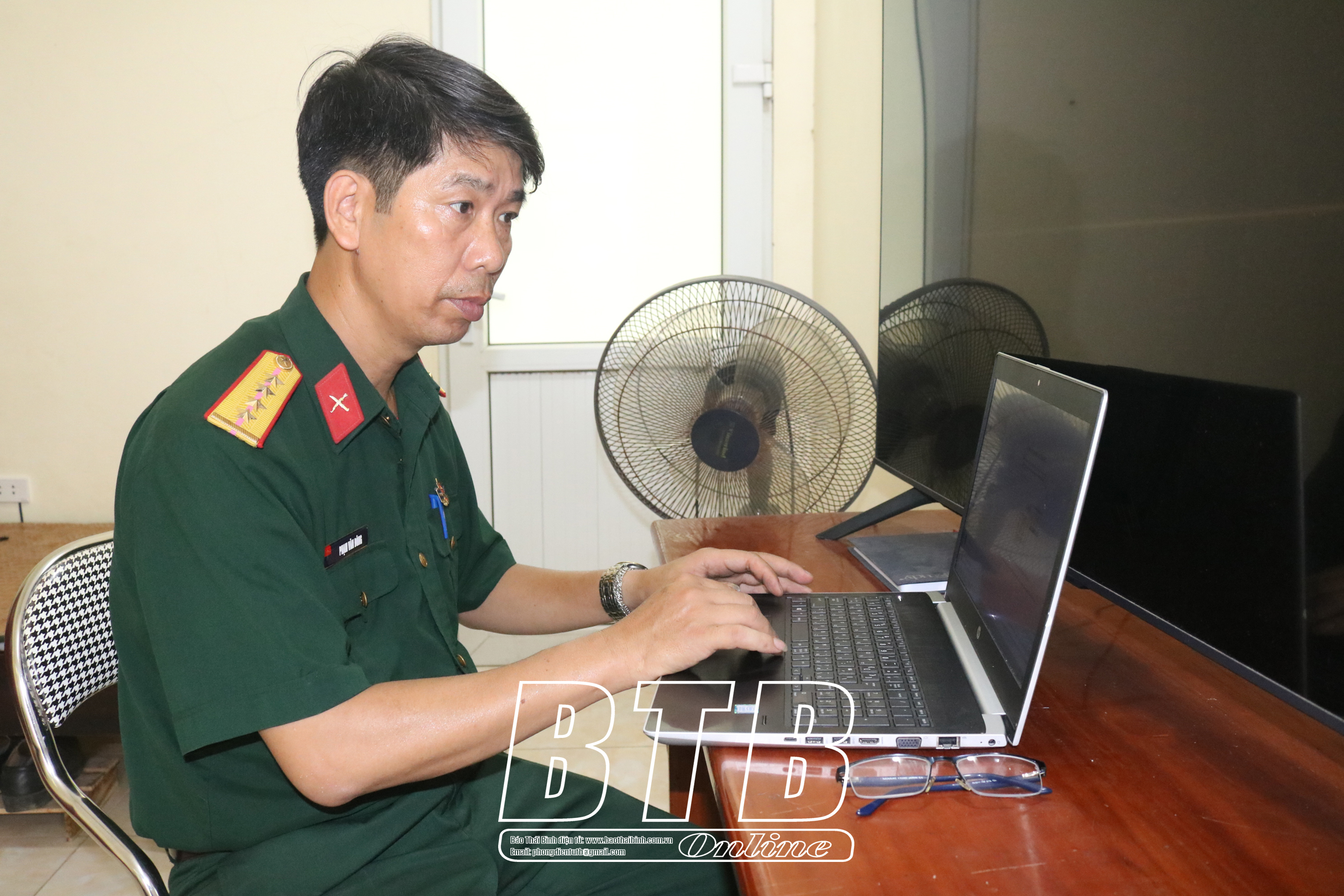 Đại úy Phạm Văn Đông, Ban Chỉ huy Quân sự huyện Tiền Hải luôn chủ động nghiên cứu những tin bài hay để nâng cao hoạt động nghiệp vụ.