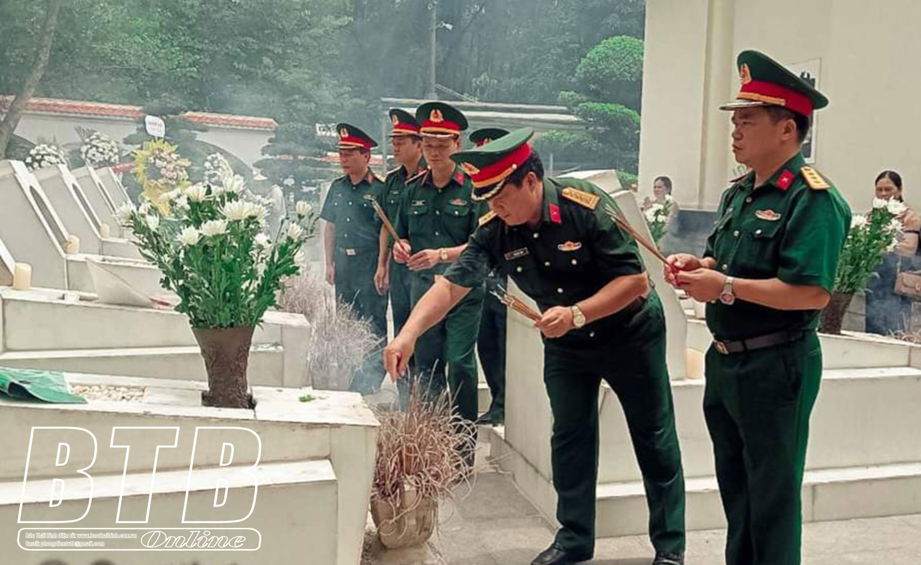 Trong không khí trang nghiêm, thành kính, đoàn đã đặt vòng hoa, dâng hương, dành một phút mặc niệm, tưởng nhớ và bày tỏ lòng biết ơn vô hạn đối với công lao to lớn của những anh hùng liệt sĩ đã ngã xuống vì nền độc lập, tự do của Tổ quốc, vì hạnh phúc của nhân dân; kính cẩn nghiêng mình thắp nén hương thơm cho những người con ưu tú của quê hương Thái Bình đã anh dũng chiến đấu và hy sinh vì sự nghiệp đấu tranh giải phóng dân tộc, vì hạnh phúc của nhân dân.