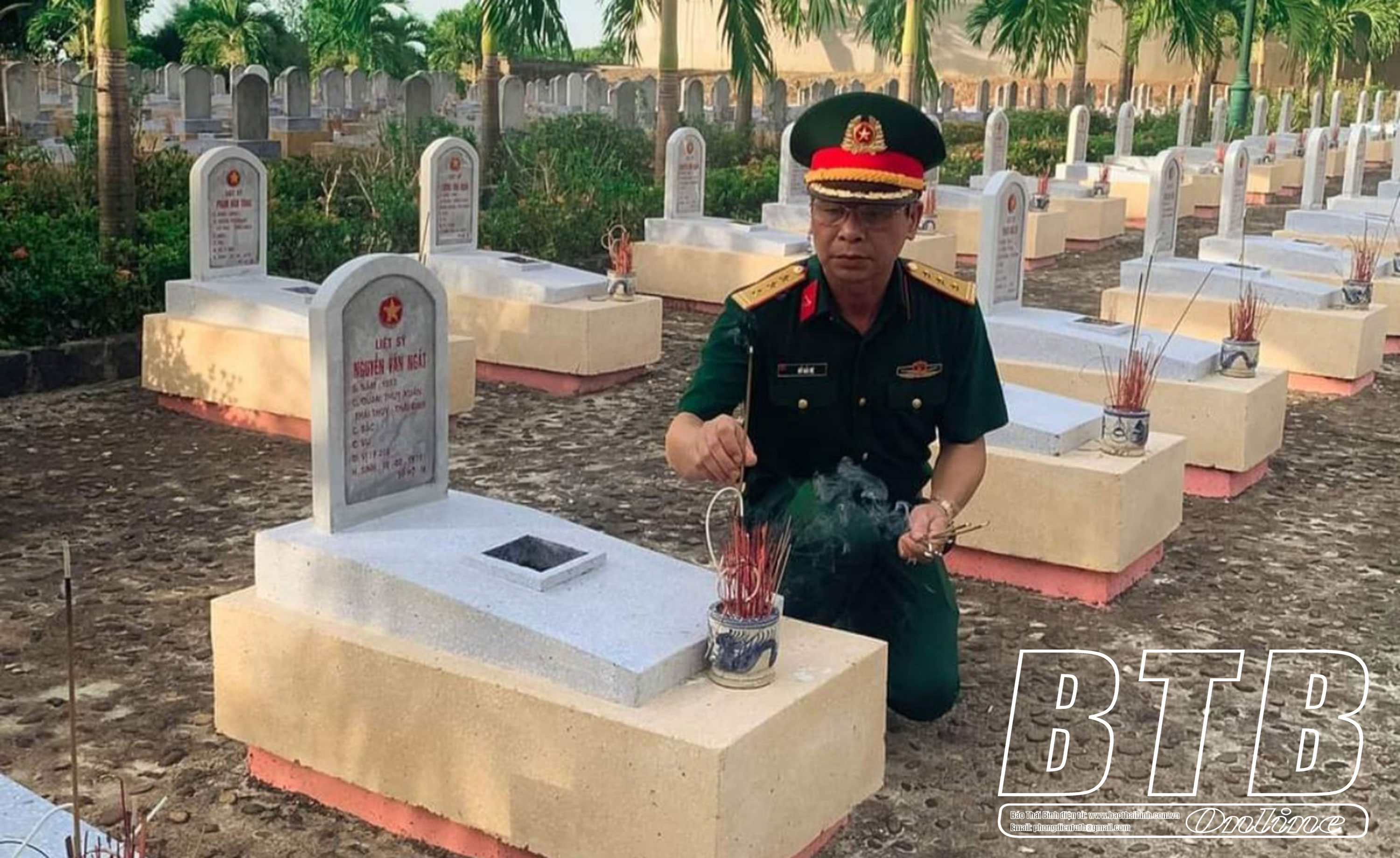 Thắp hương cho các anh hùng liệt sĩ người con của quê hương Thái Bình.
